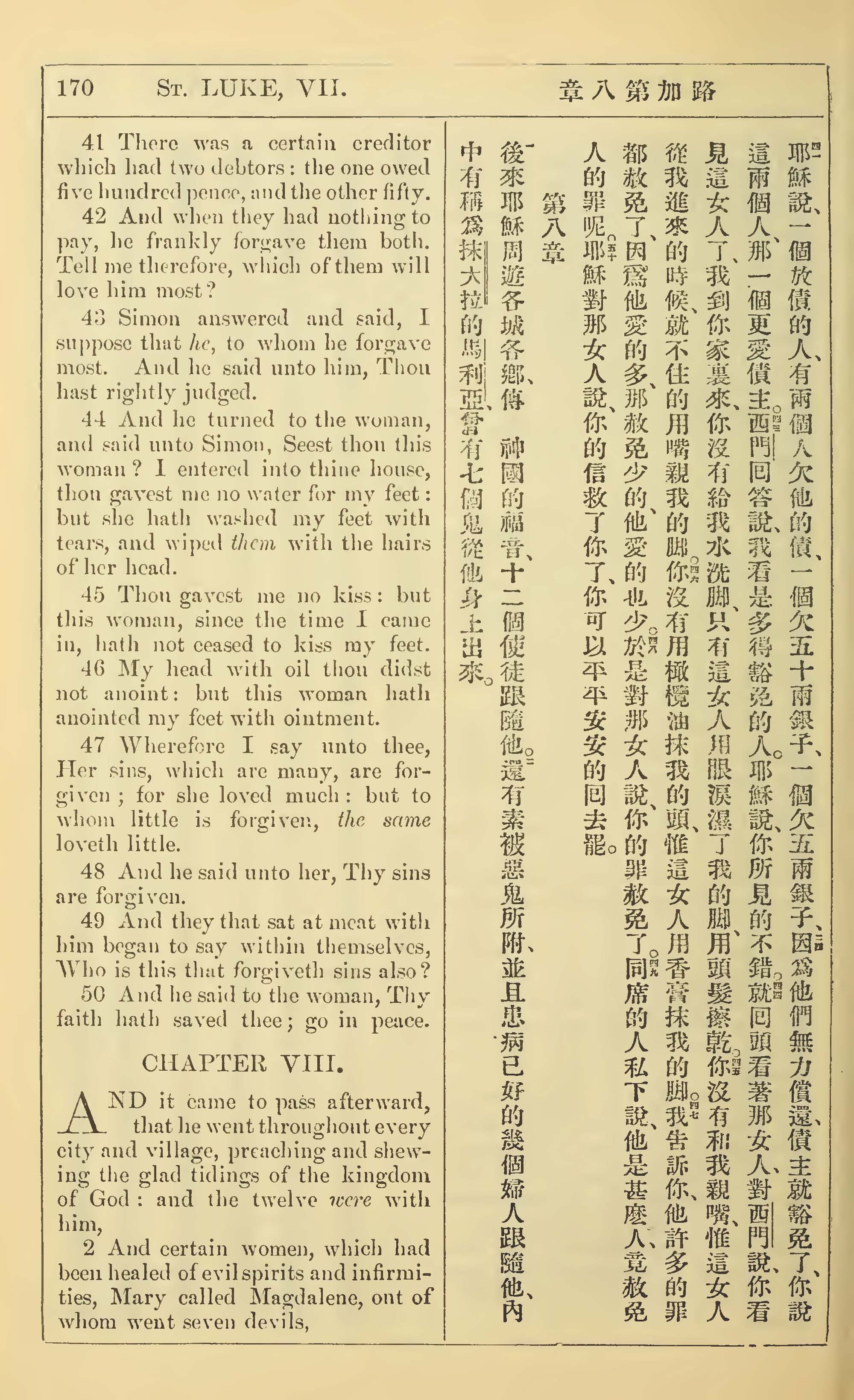 1902年新約全書(中英對照) 路加福音 7 章 41 節到 8 章 2 節