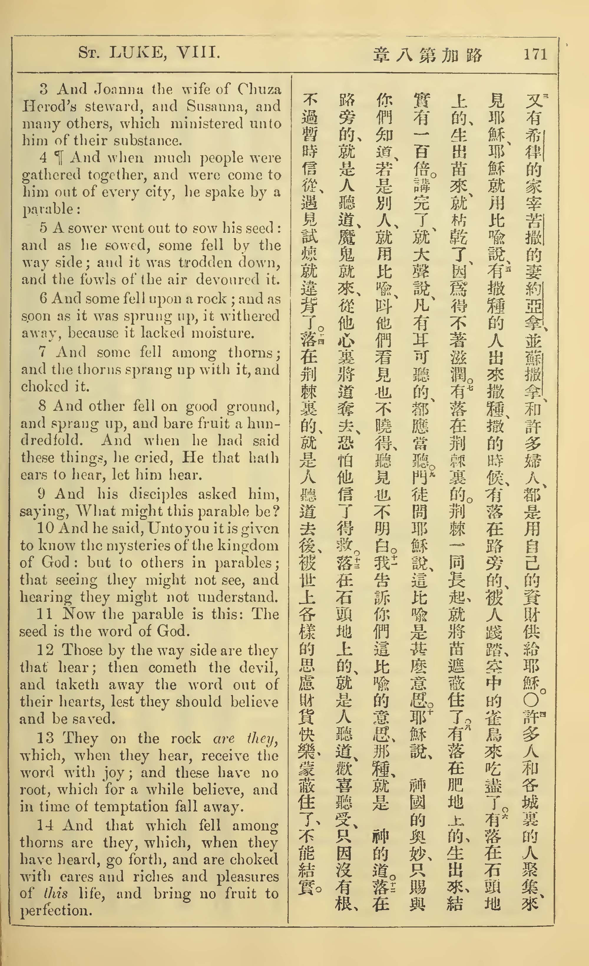 1902年新約全書(中英對照) 路加福音 8 章 3 節到 8 章 14 節
