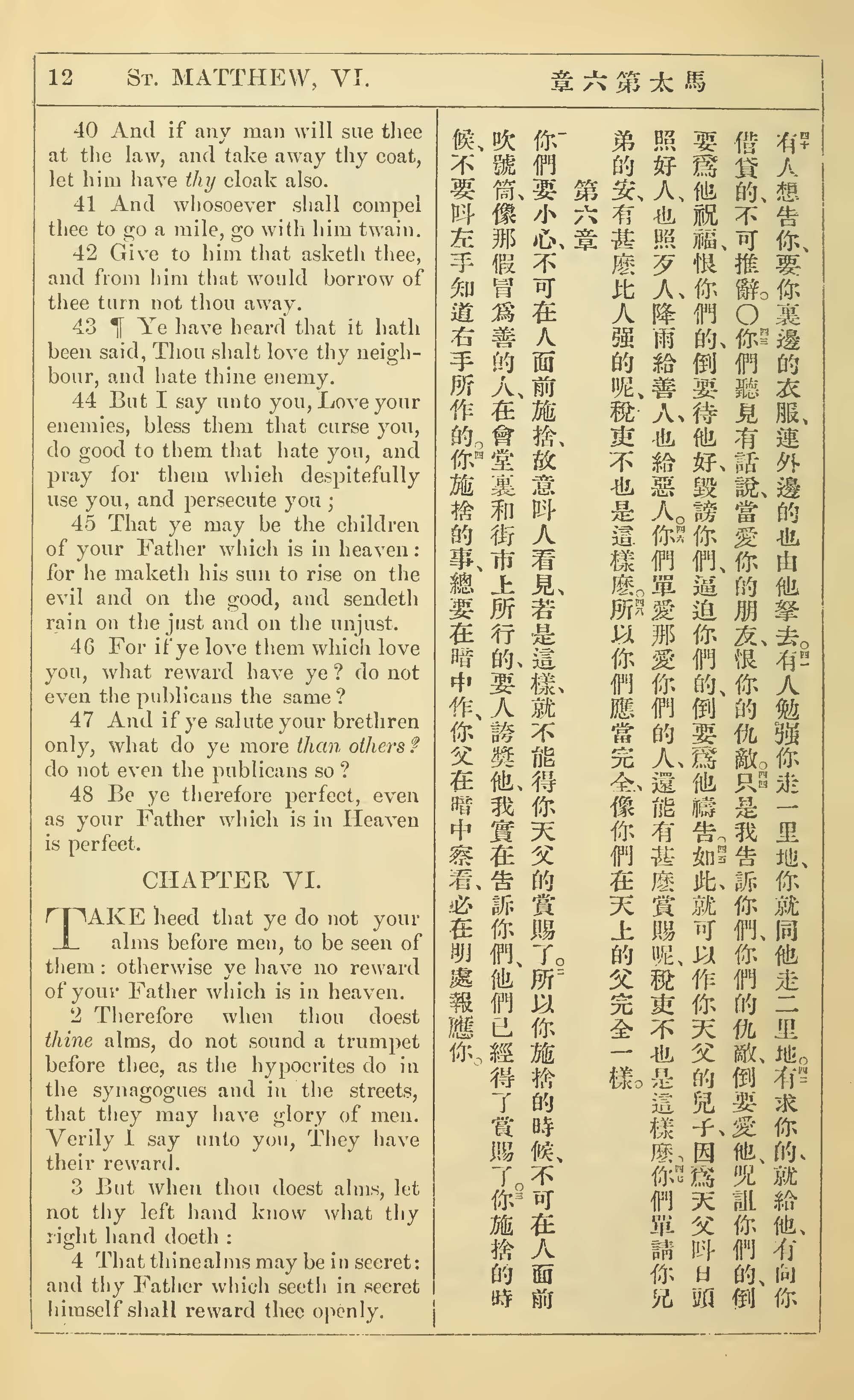 1902年新約全書(中英對照) 馬太福音 5 章 40 節到 6 章 4 節