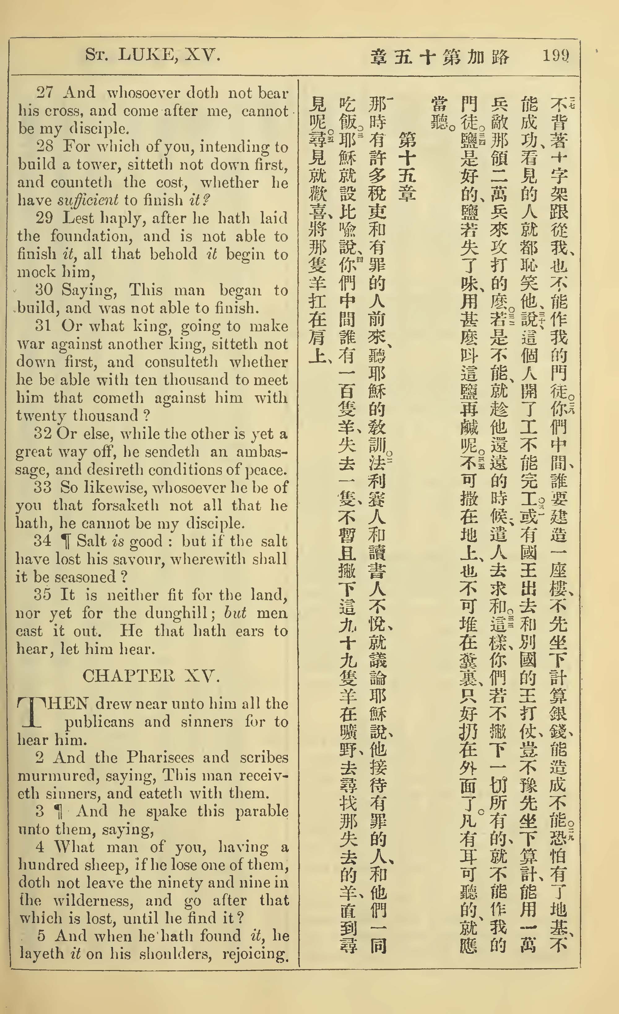 1902年新約全書(中英對照) 路加福音 14 章 27 節到 15 章 5 節