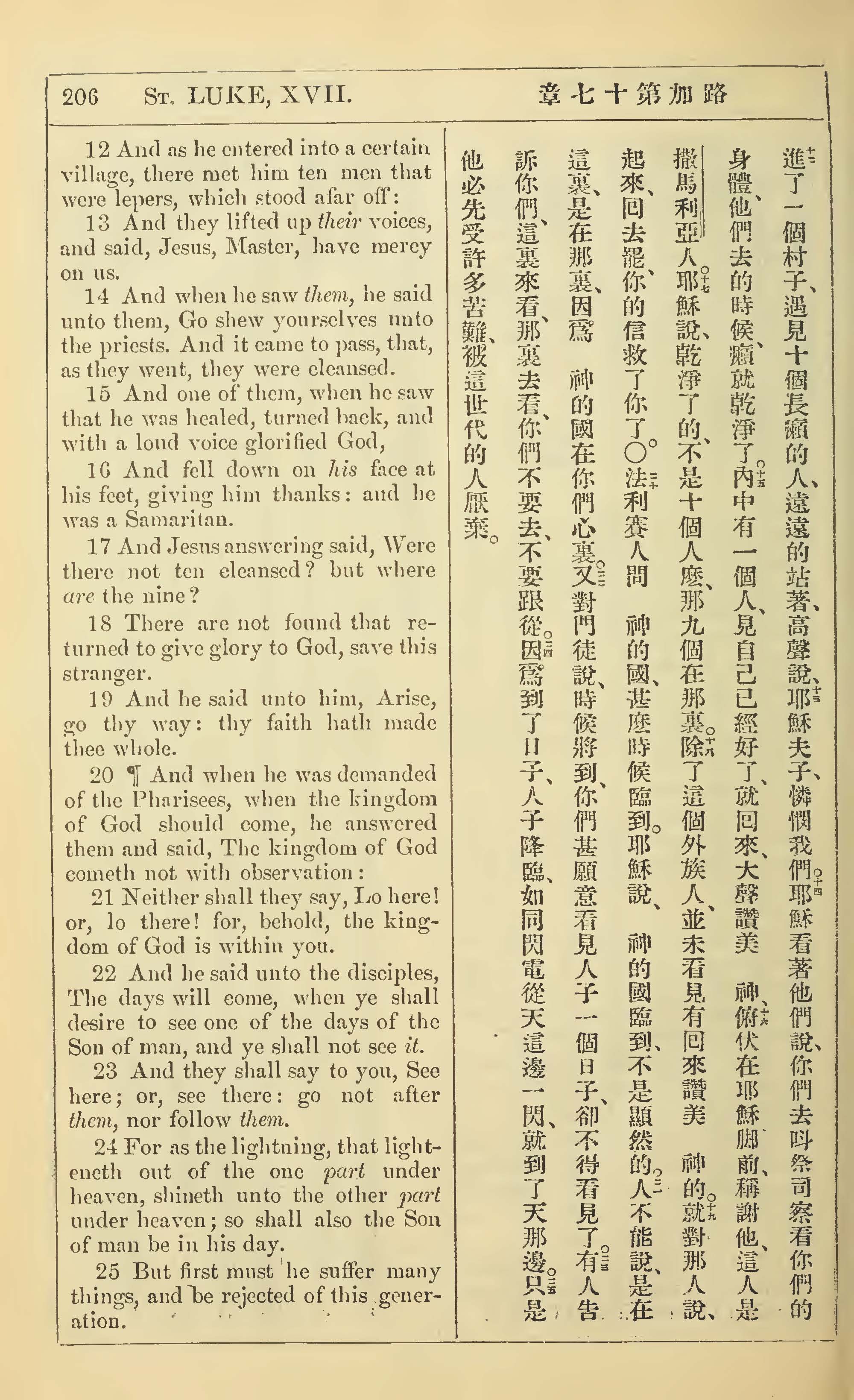 1902年新約全書(中英對照) 路加福音 17 章 12 節到 17 章 25 節