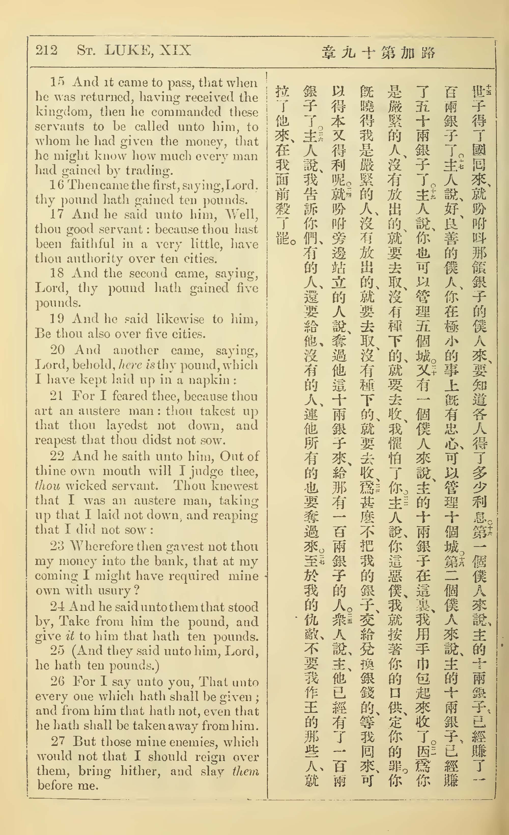 1902年新約全書(中英對照) 路加福音 19 章 15 節到 19 章 27 節