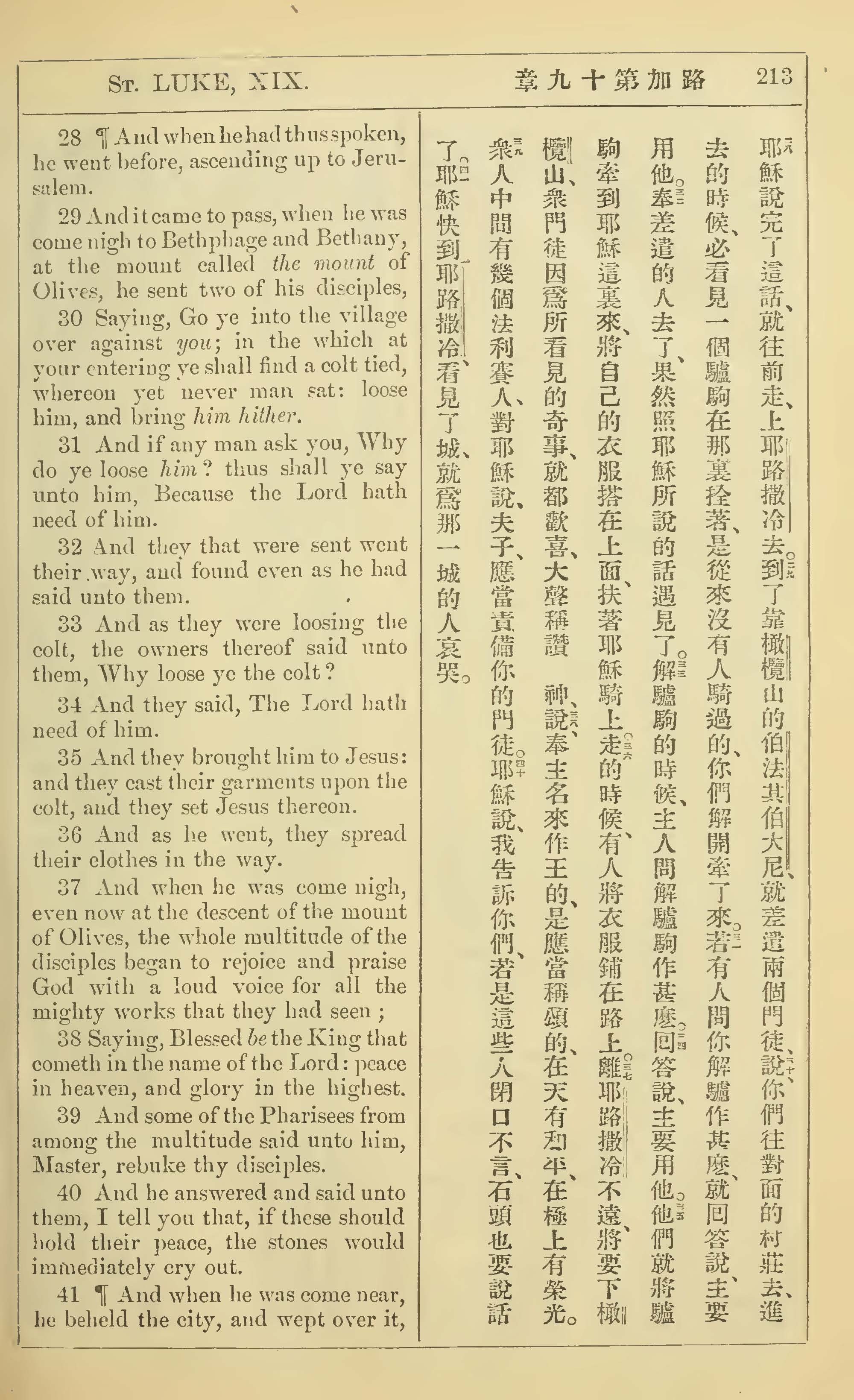 1902年新約全書(中英對照) 路加福音 19 章 28 節到 19 章 41 節