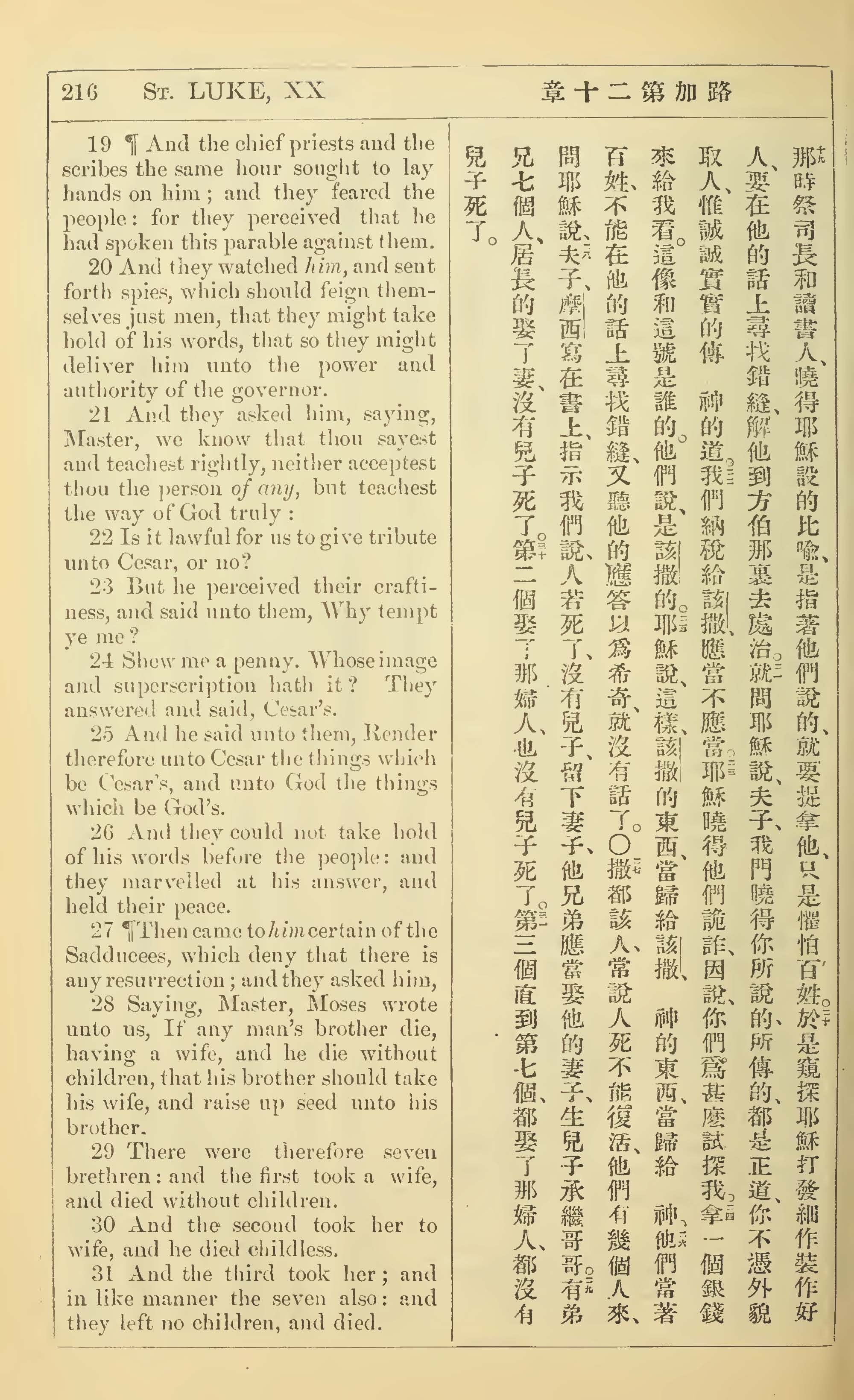 1902年新約全書(中英對照) 路加福音 20 章 19 節到 20 章 31 節