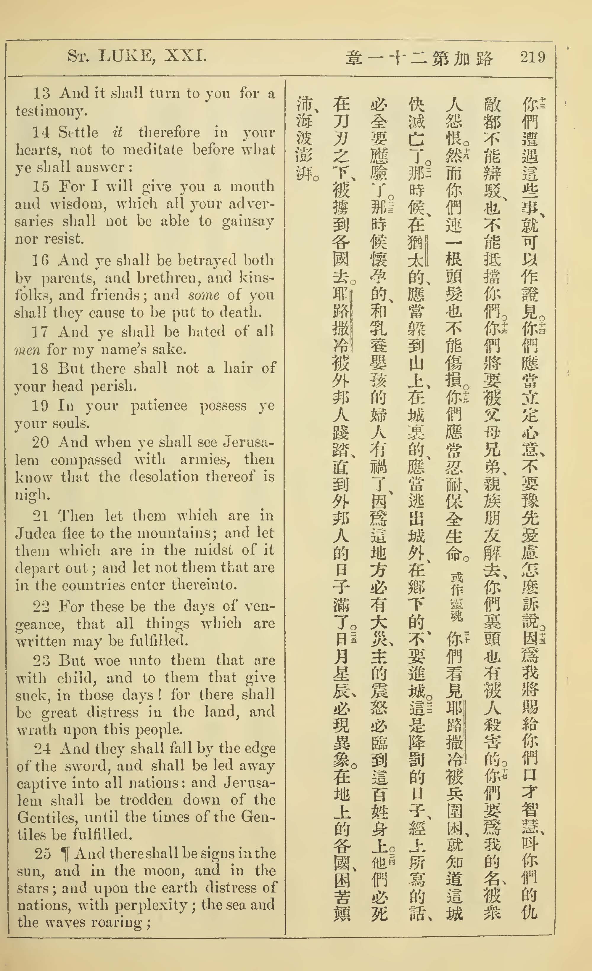 1902年新約全書(中英對照) 路加福音 21 章 13 節到 21 章 25 節