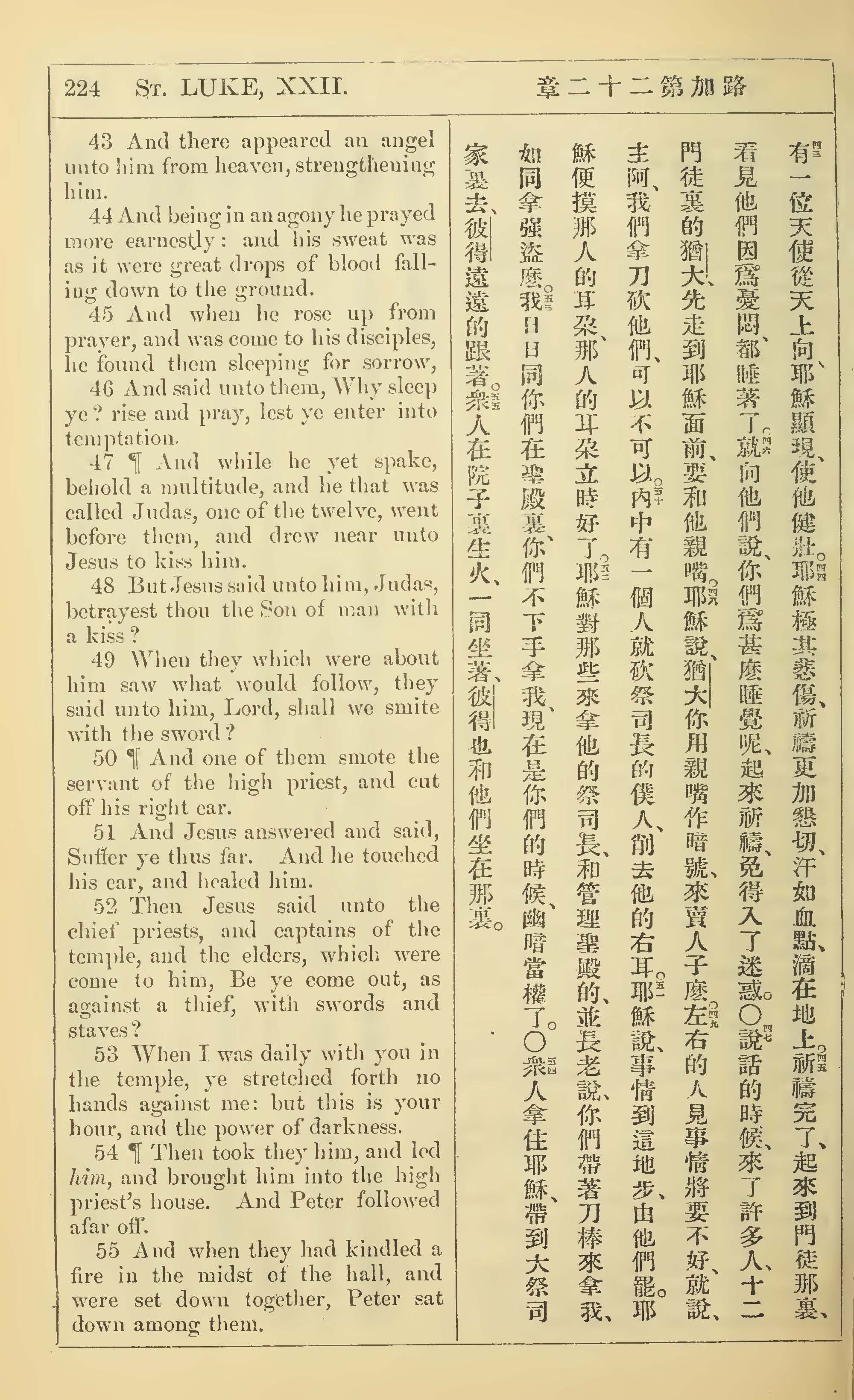 1902年新約全書(中英對照) 路加福音 22 章 43 節到 22 章 55 節