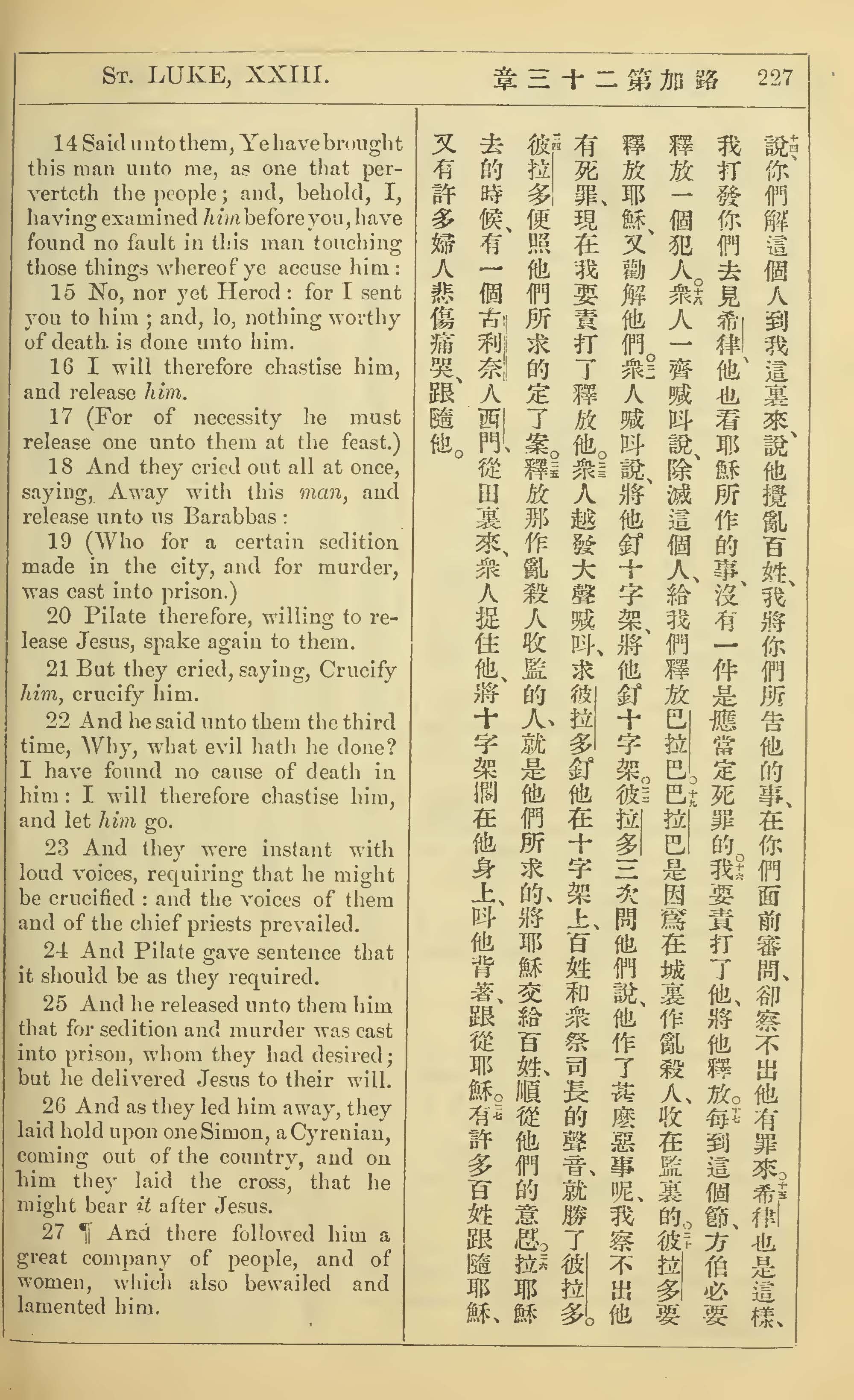 1902年新約全書(中英對照) 路加福音 23 章 14 節到 23 章 27 節