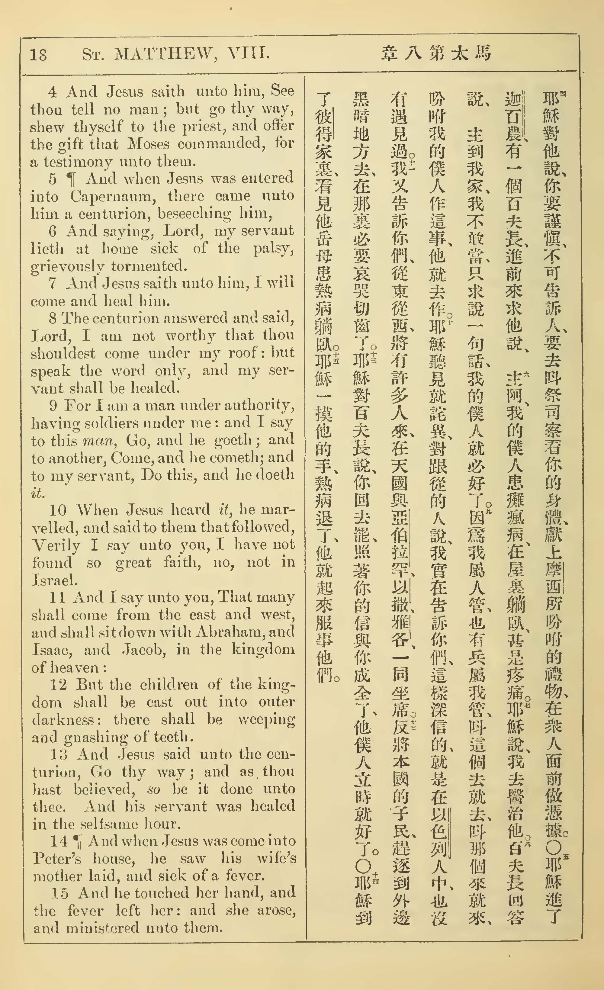 1902年新約全書(中英對照) 馬太福音 8 章 4 節到 8 章 15 節