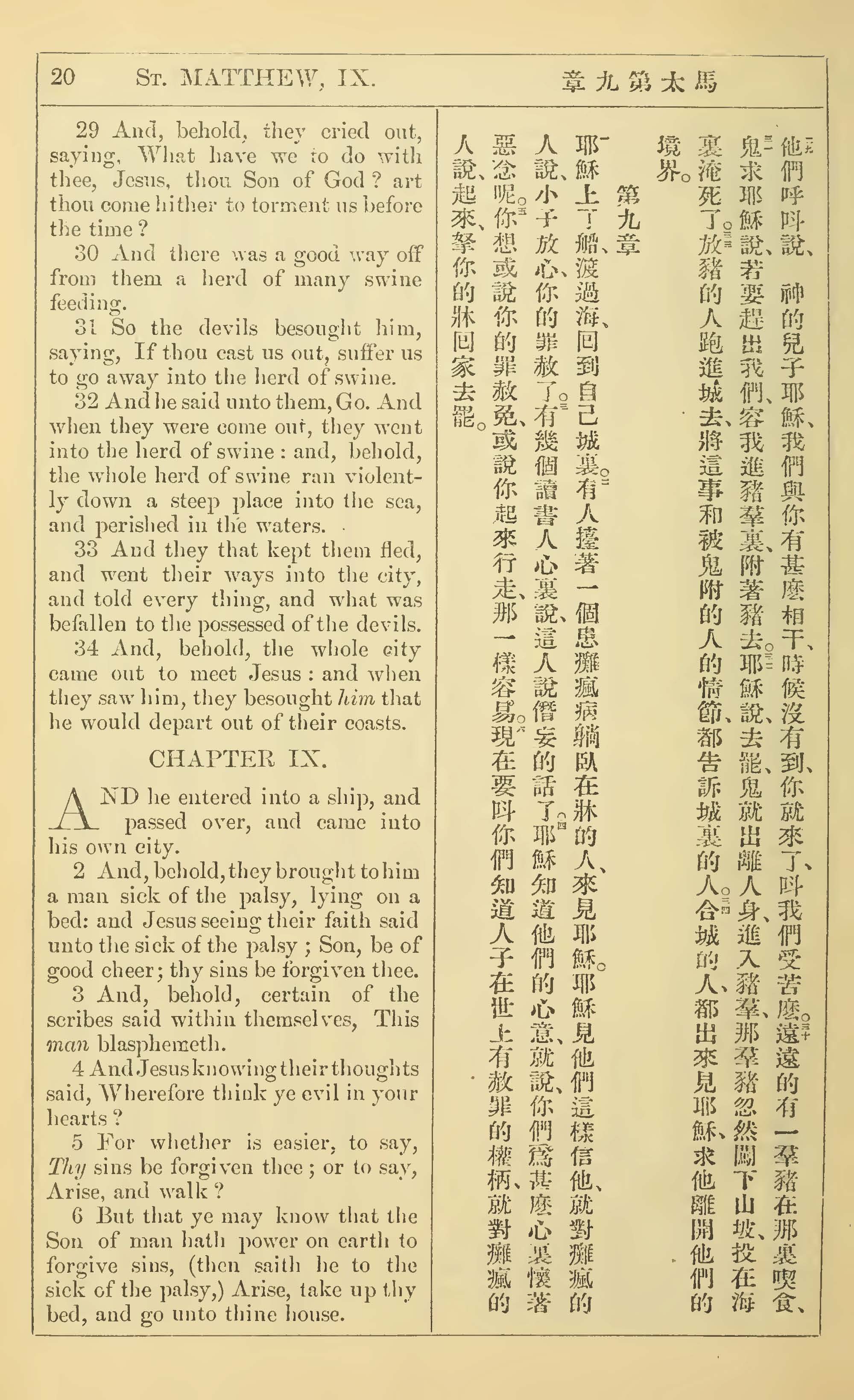 1902年新約全書(中英對照) 馬太福音 8 章 29 節到 9 章 6 節