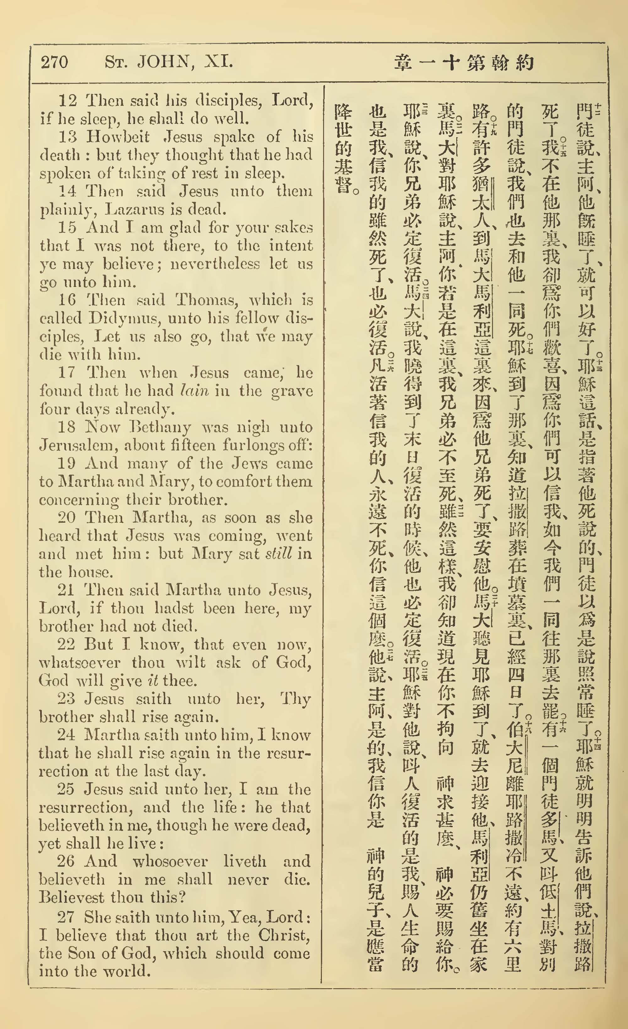 1902年新約全書(中英對照) 約翰福音 11 章 12 節到 11 章 27 節
