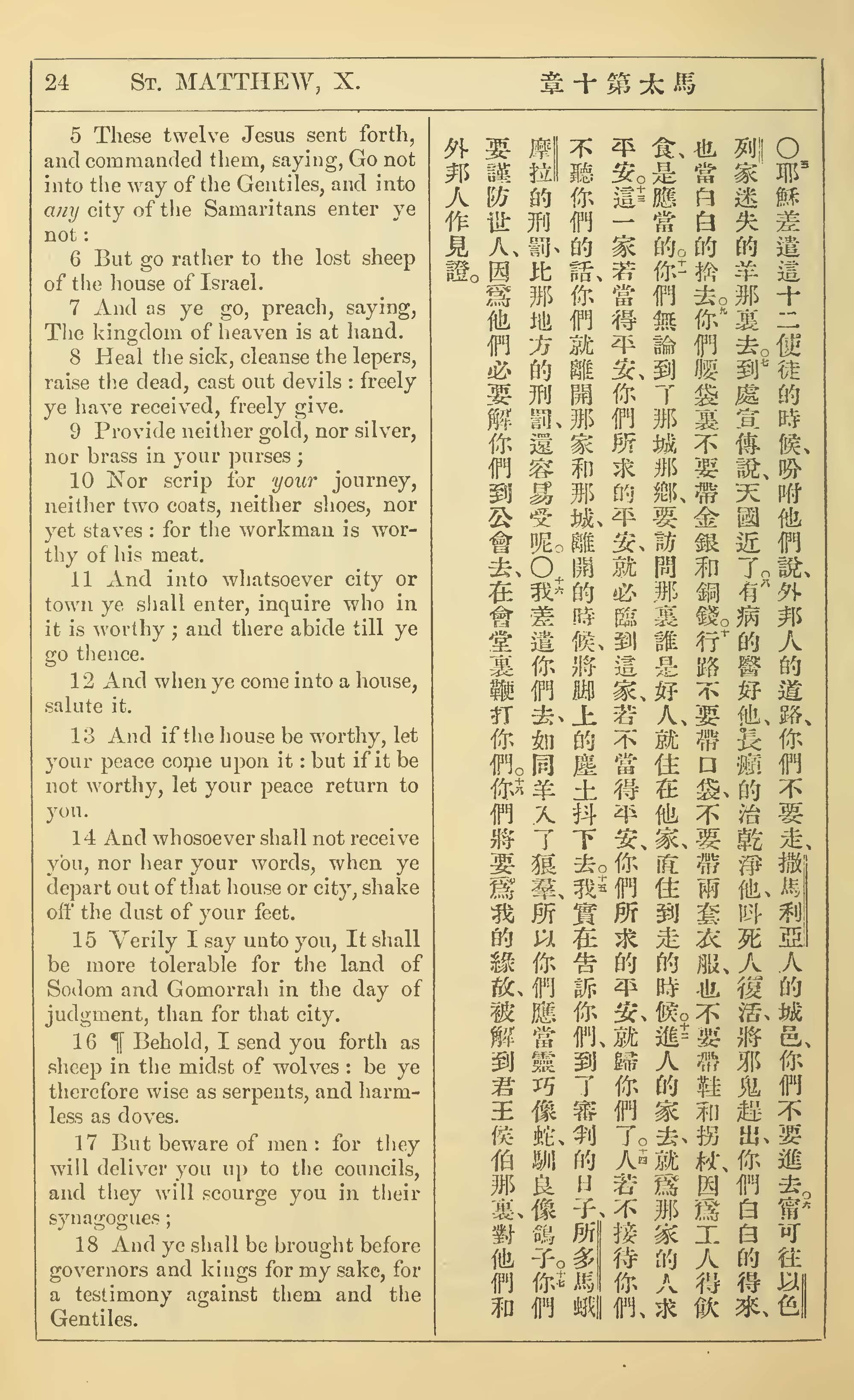 1902年新約全書(中英對照) 馬太福音 10 章 5 節到 10 章 18 節