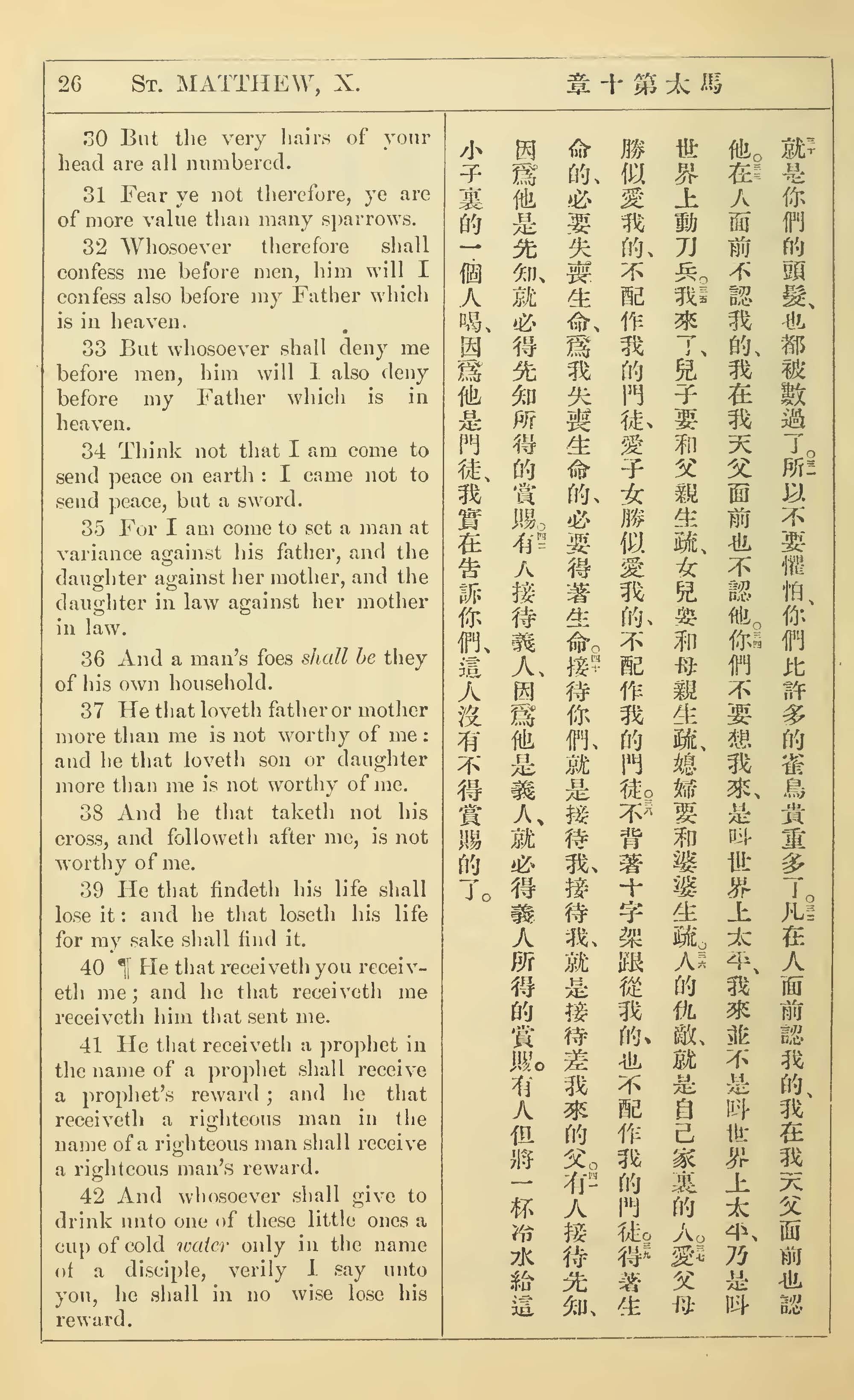 1902年新約全書(中英對照) 馬太福音 10 章 30 節到 10 章 42 節