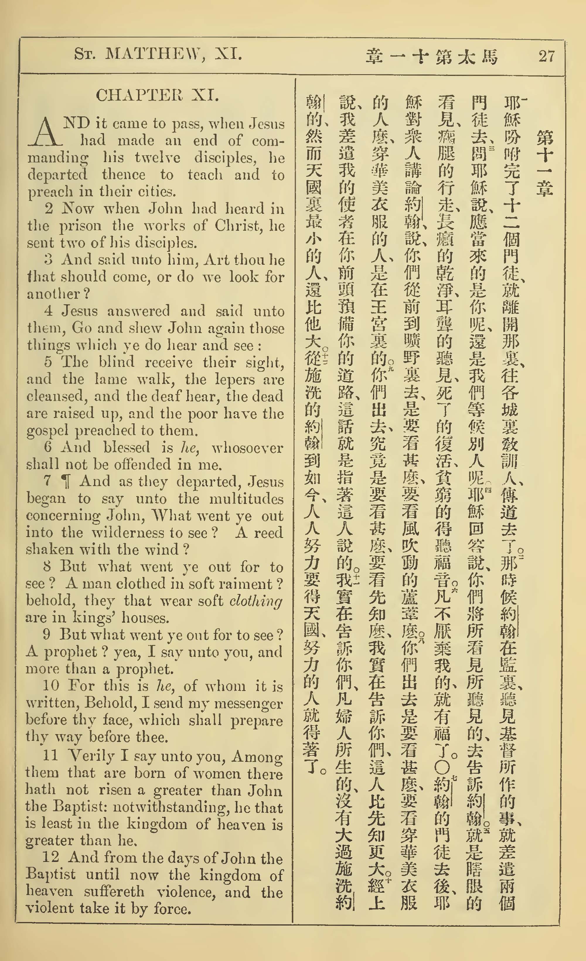 1902年新約全書(中英對照) 馬太福音 11 章 1 節到 11 章 12 節