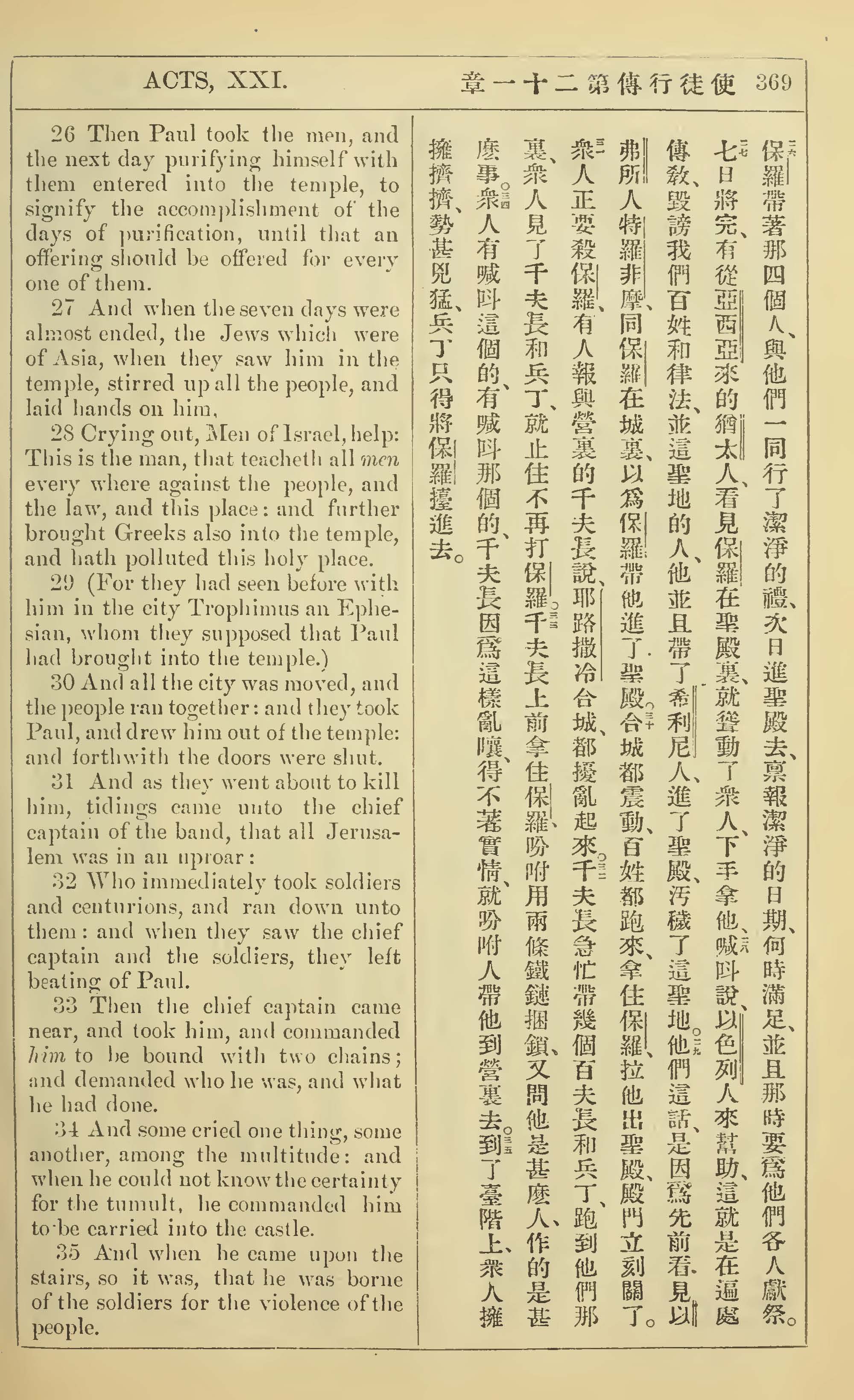 1902年新約全書(中英對照) 使徒行傳 21 章 26 節到 21 章 35 節