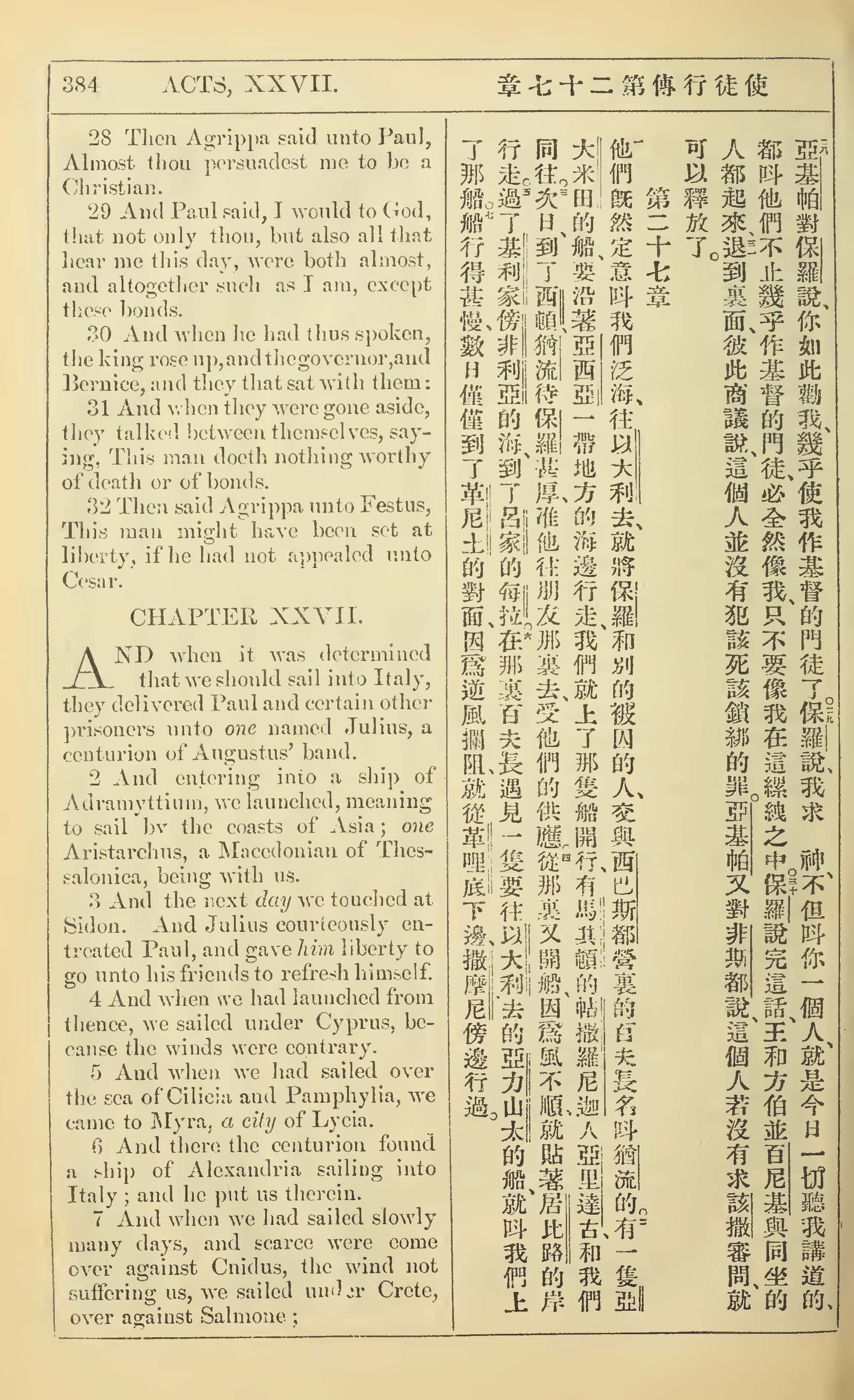 1902年新約全書(中英對照) 使徒行傳 26 章 28 節到 27 章 7 節