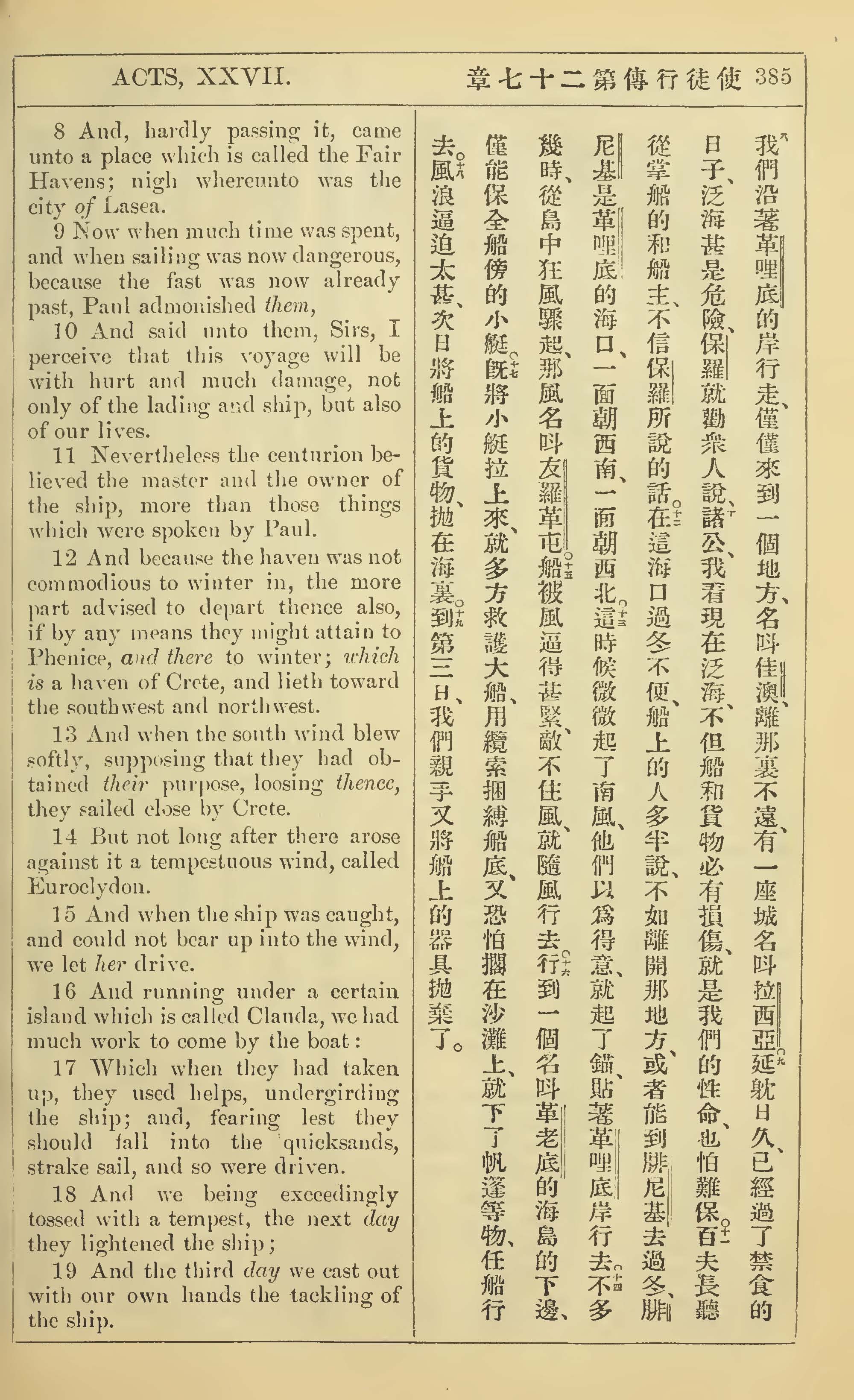 1902年新約全書(中英對照) 使徒行傳 27 章 8 節到 27 章 19 節