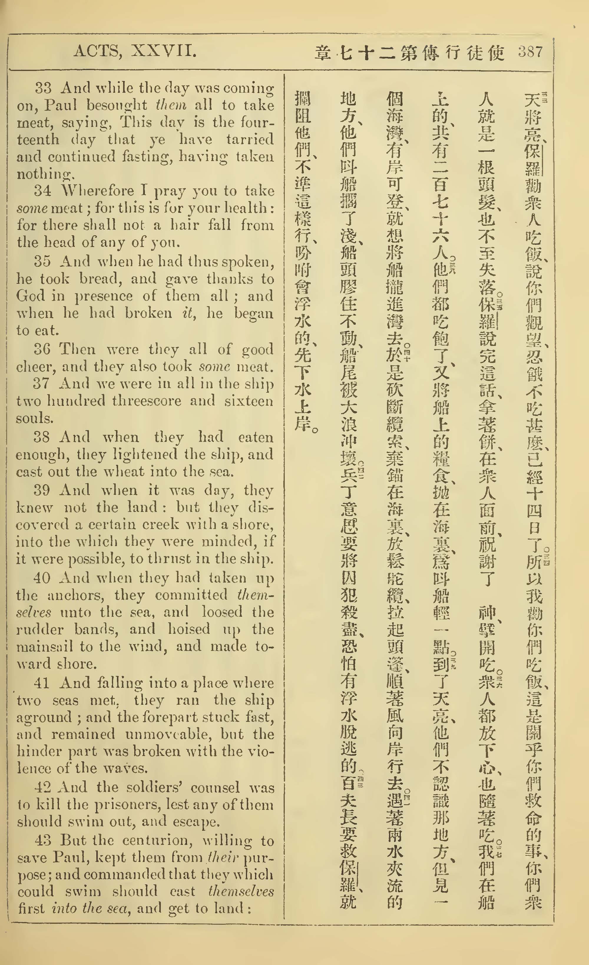 1902年新約全書(中英對照) 使徒行傳 27 章 33 節到 27 章 43 節
