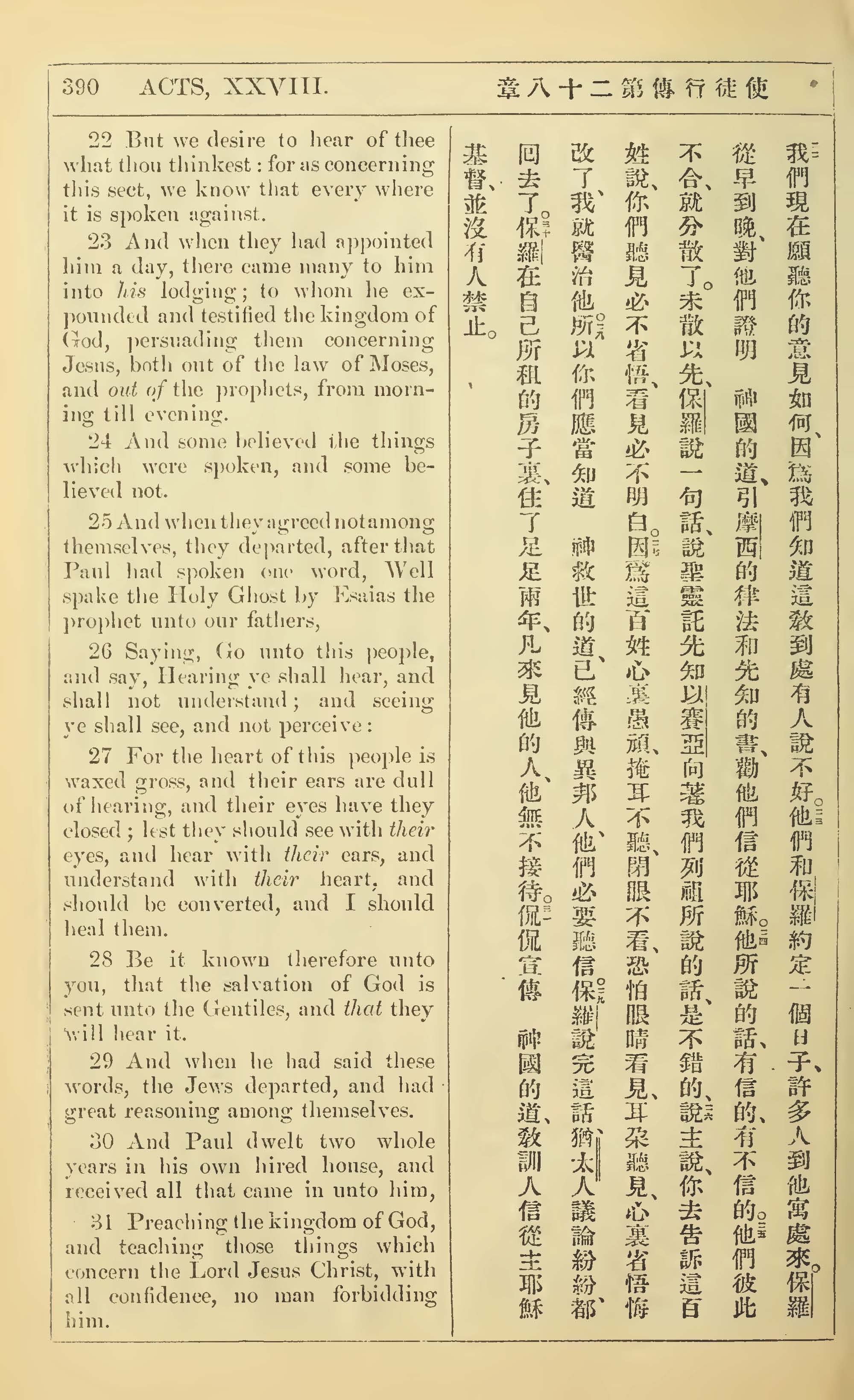 1902年新約全書(中英對照) 使徒行傳 28 章 22 節到 28 章 31 節