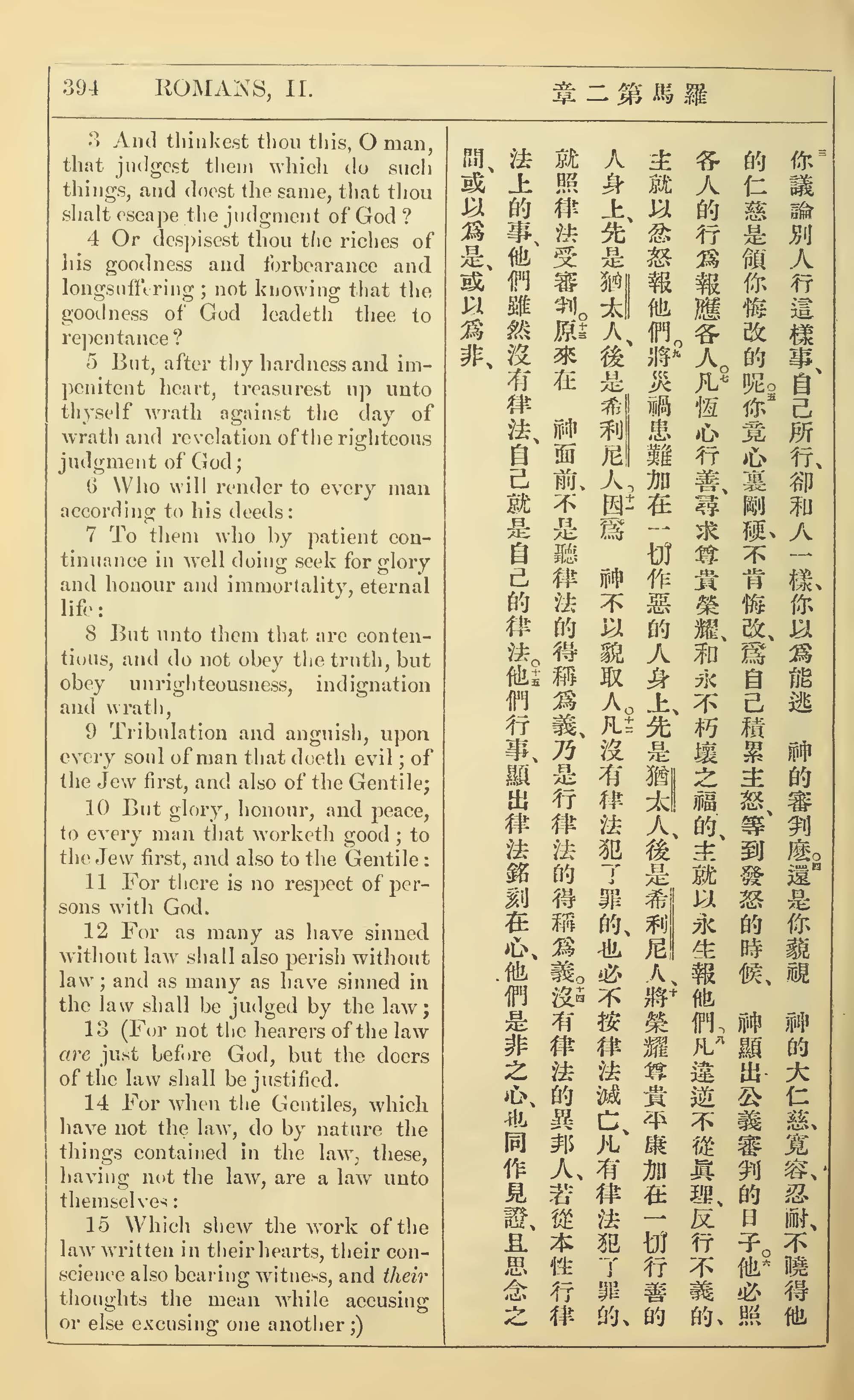 1902年新約全書(中英對照) 羅馬書 2 章 3 節到 2 章 15 節