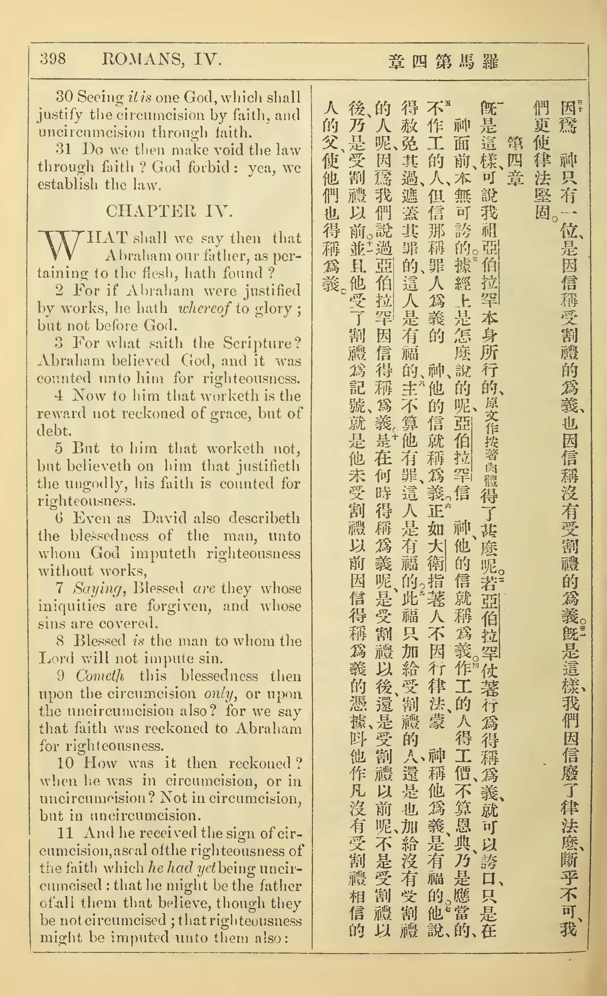 1902年新約全書(中英對照) 羅馬書 3 章 30 節到 4 章 11 節
