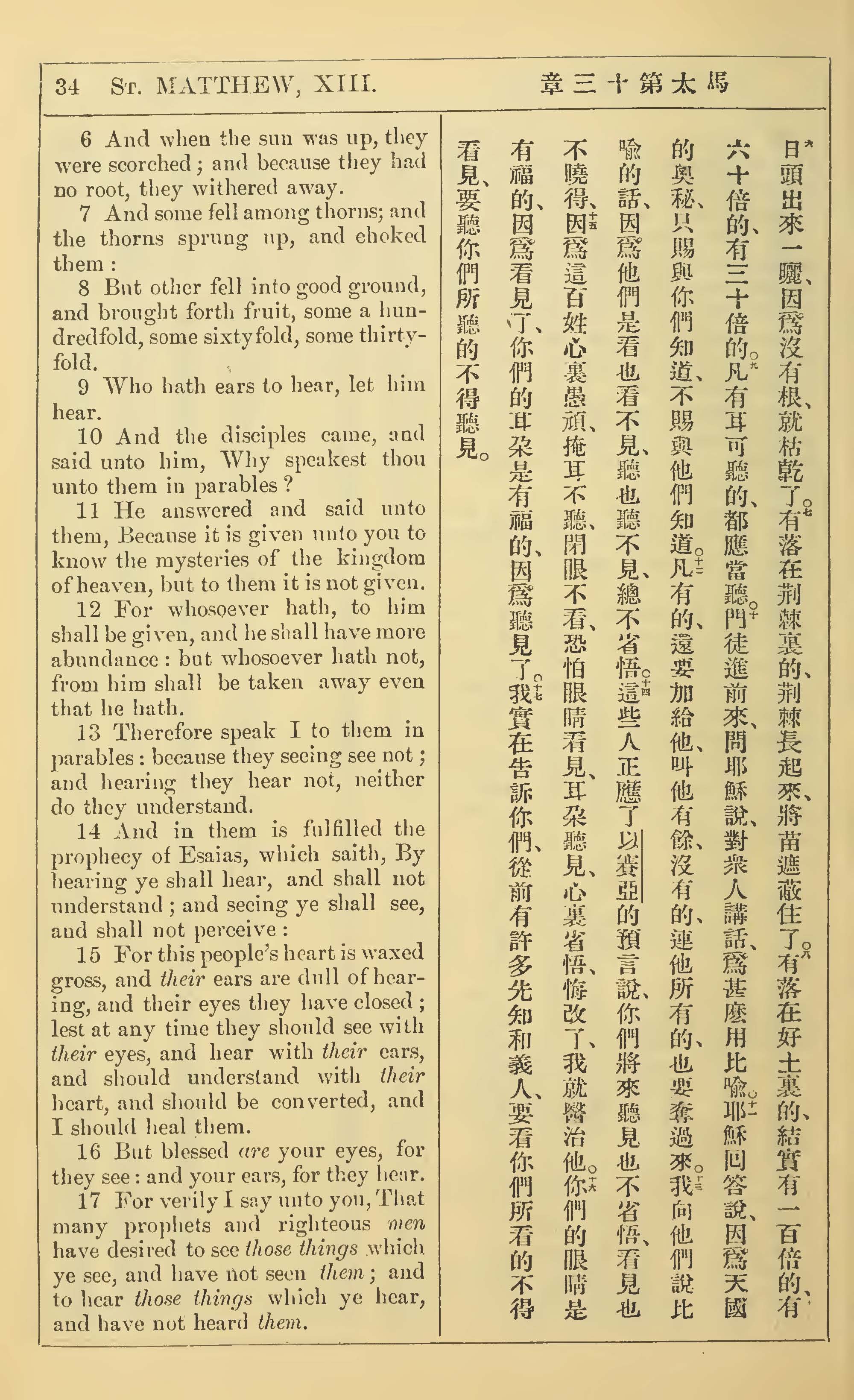 1902年新約全書(中英對照) 馬太福音 13 章 6 節到 13 章 17 節
