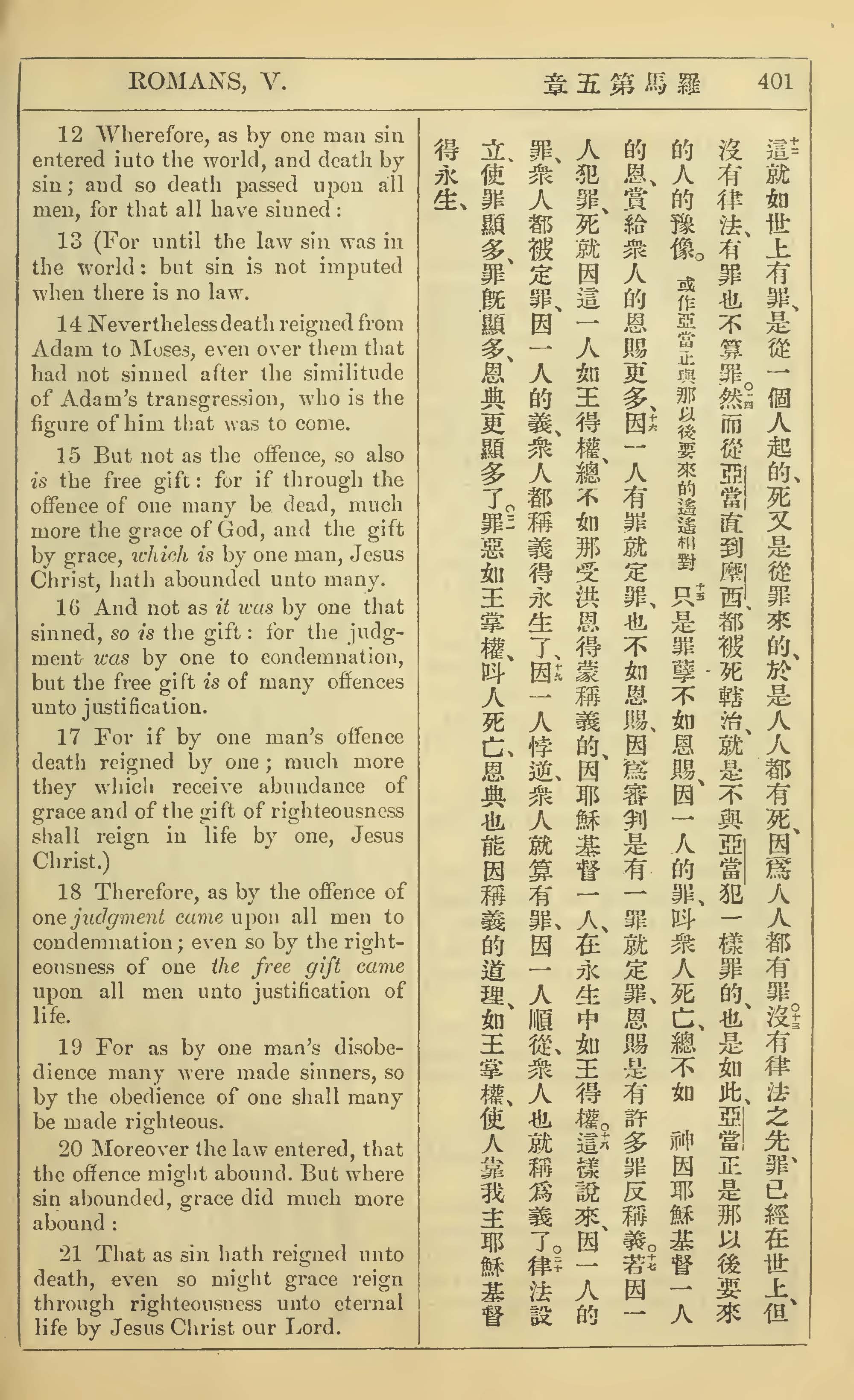 1902年新約全書(中英對照) 羅馬書 5 章 12 節到 5 章 21 節