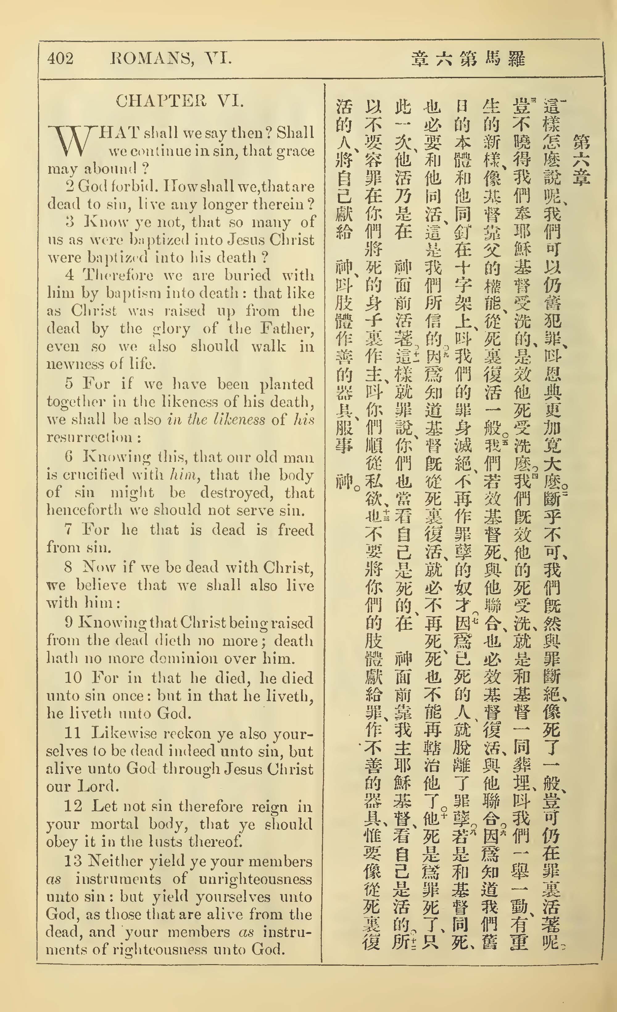 1902年新約全書(中英對照) 羅馬書 6 章 1 節到 6 章 13 節