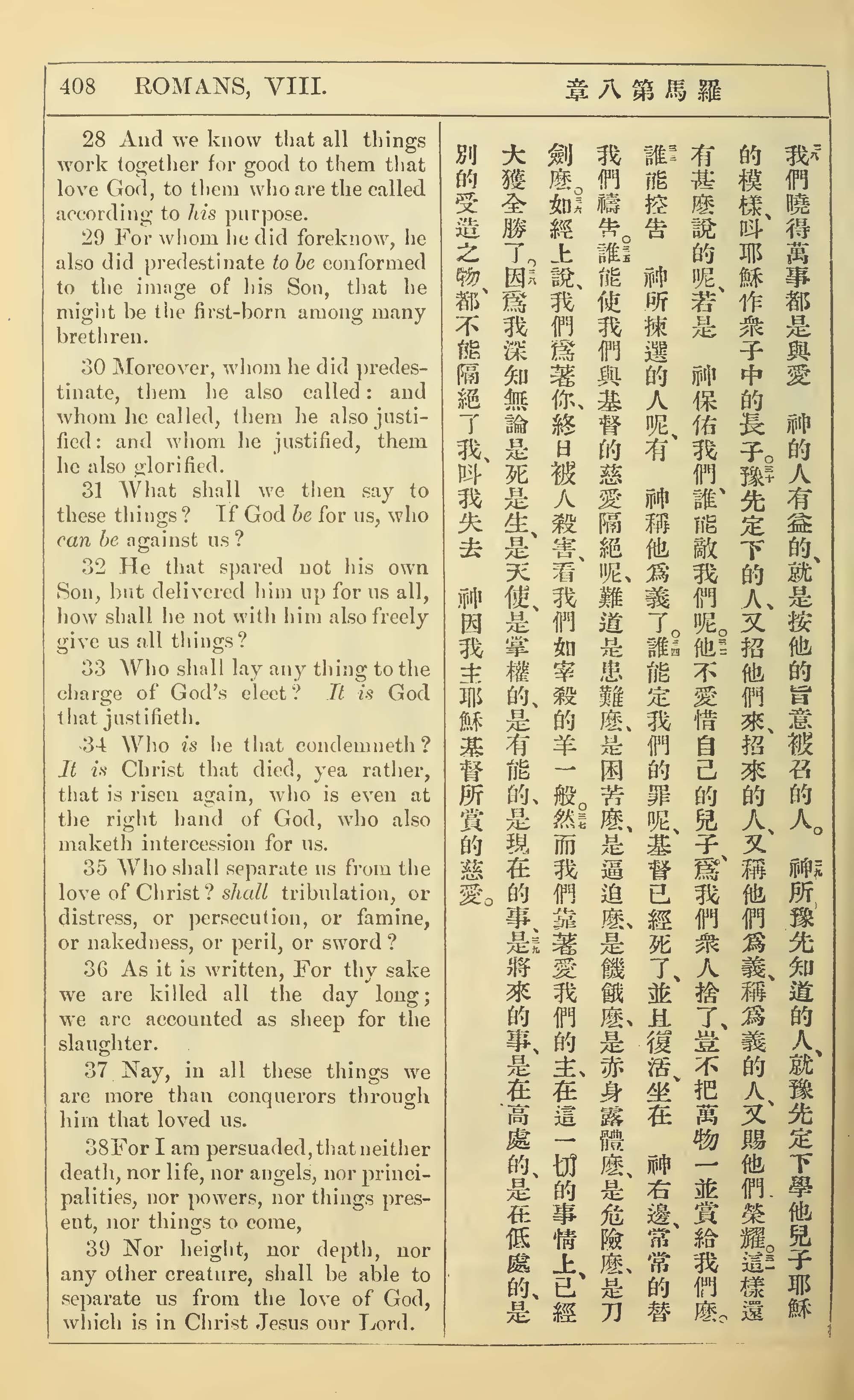 1902年新約全書(中英對照) 羅馬書 8 章 28 節到 8 章 39 節