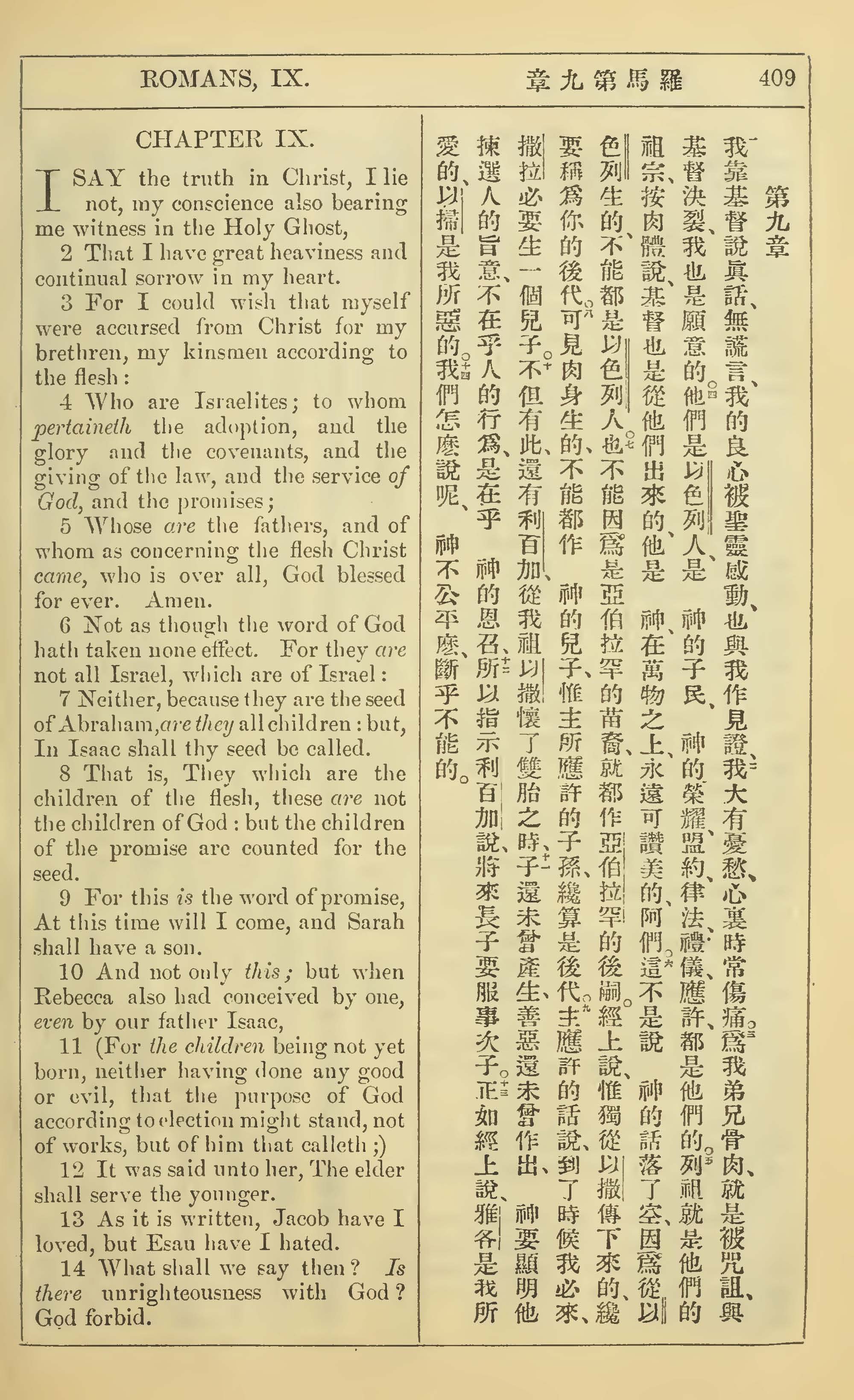 1902年新約全書(中英對照) 羅馬書 9 章 1 節到 9 章 14 節
