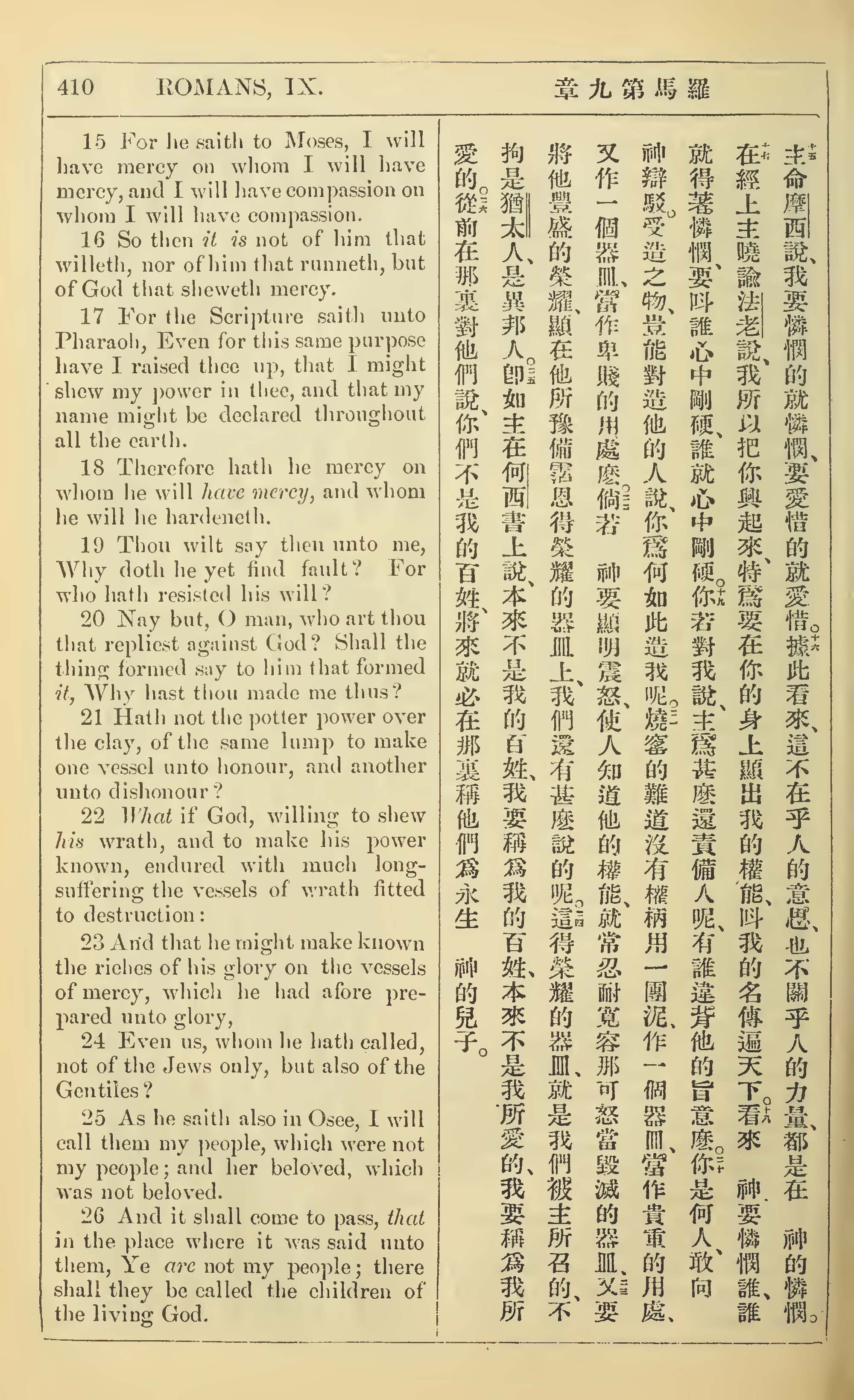 1902年新約全書(中英對照) 羅馬書 9 章 15 節到 9 章 26 節
