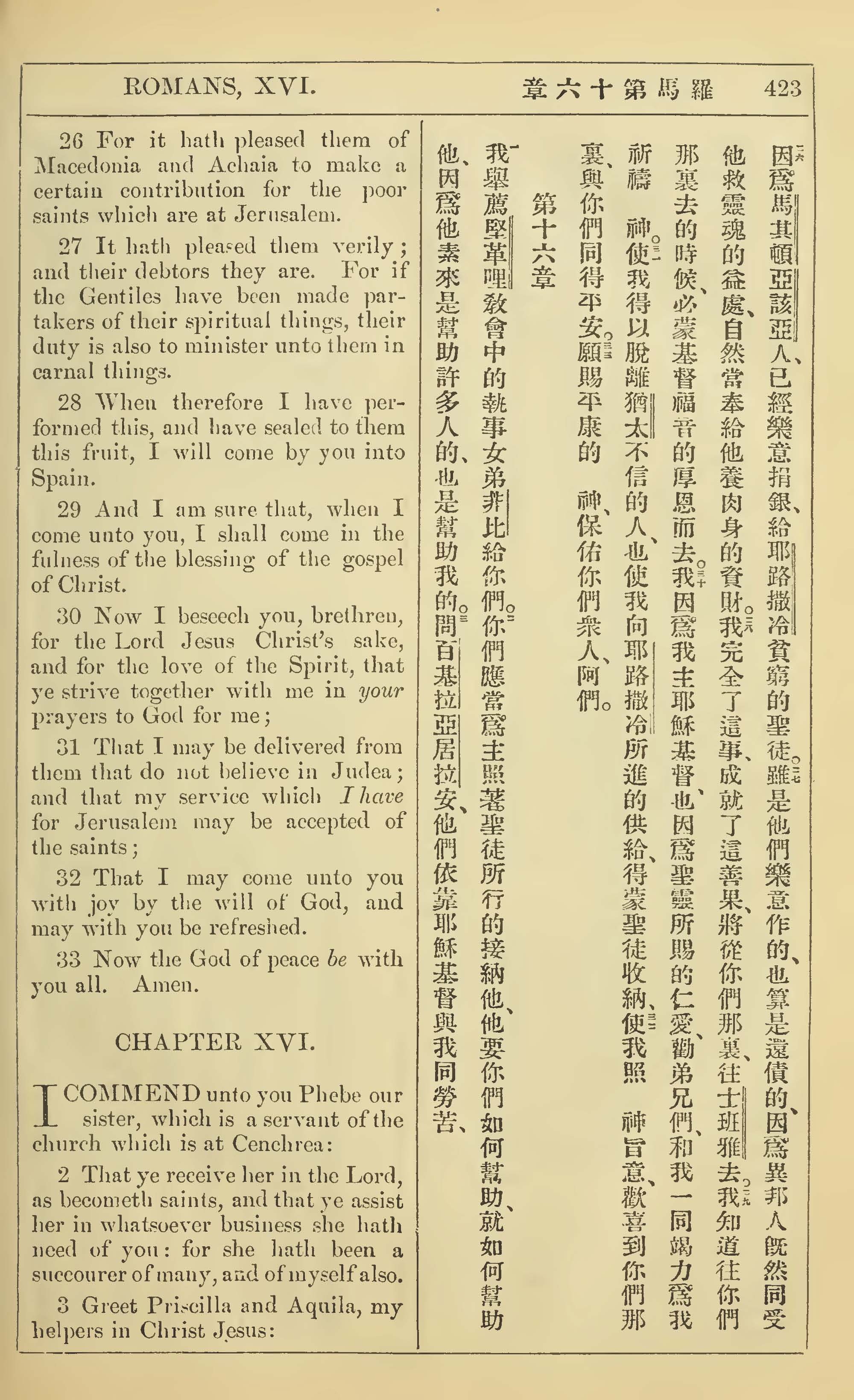 1902年新約全書(中英對照) 羅馬書 15 章 26 節到 16 章 3 節