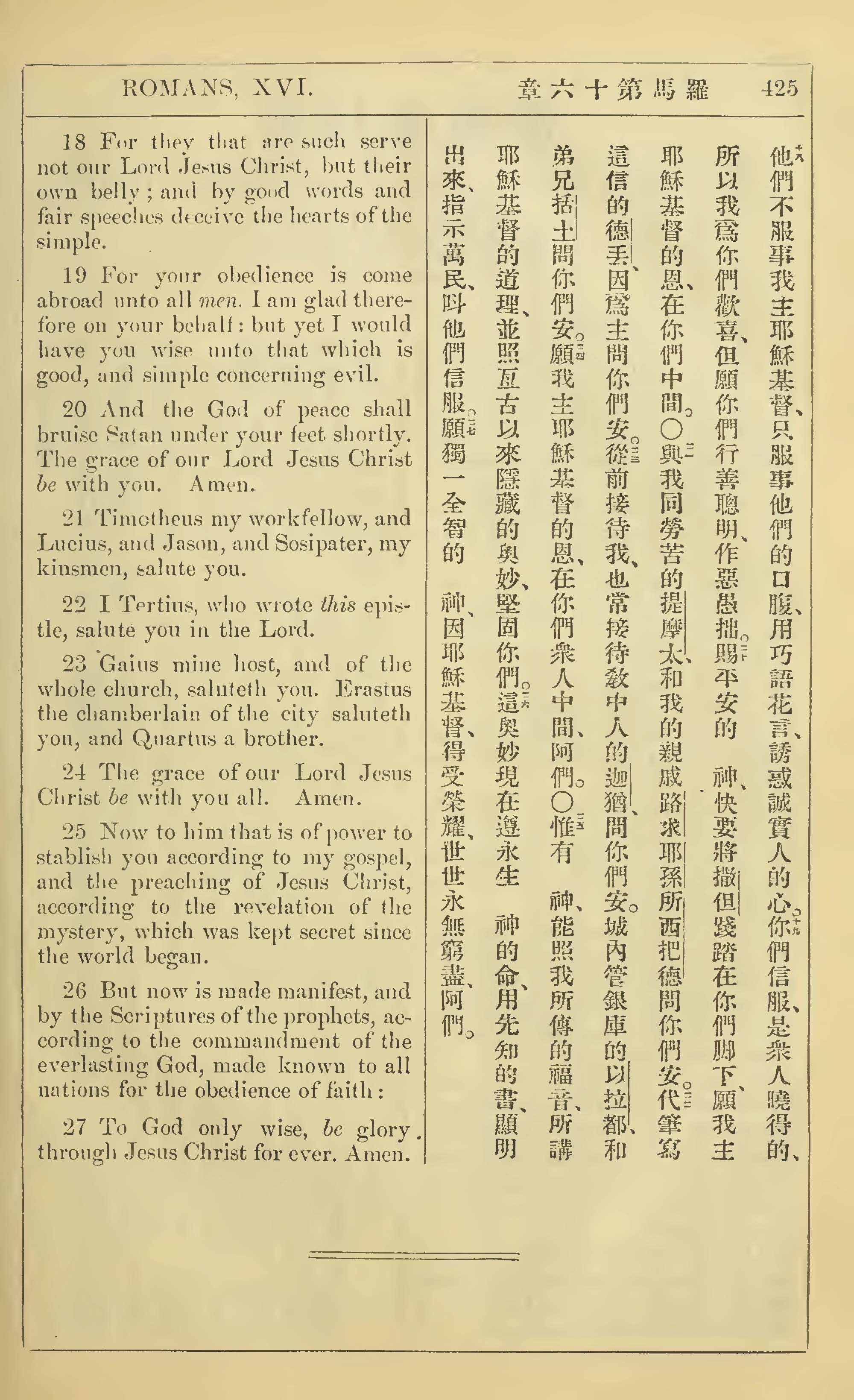 1902年新約全書(中英對照) 羅馬書 16 章 18 節到 16 章 27 節