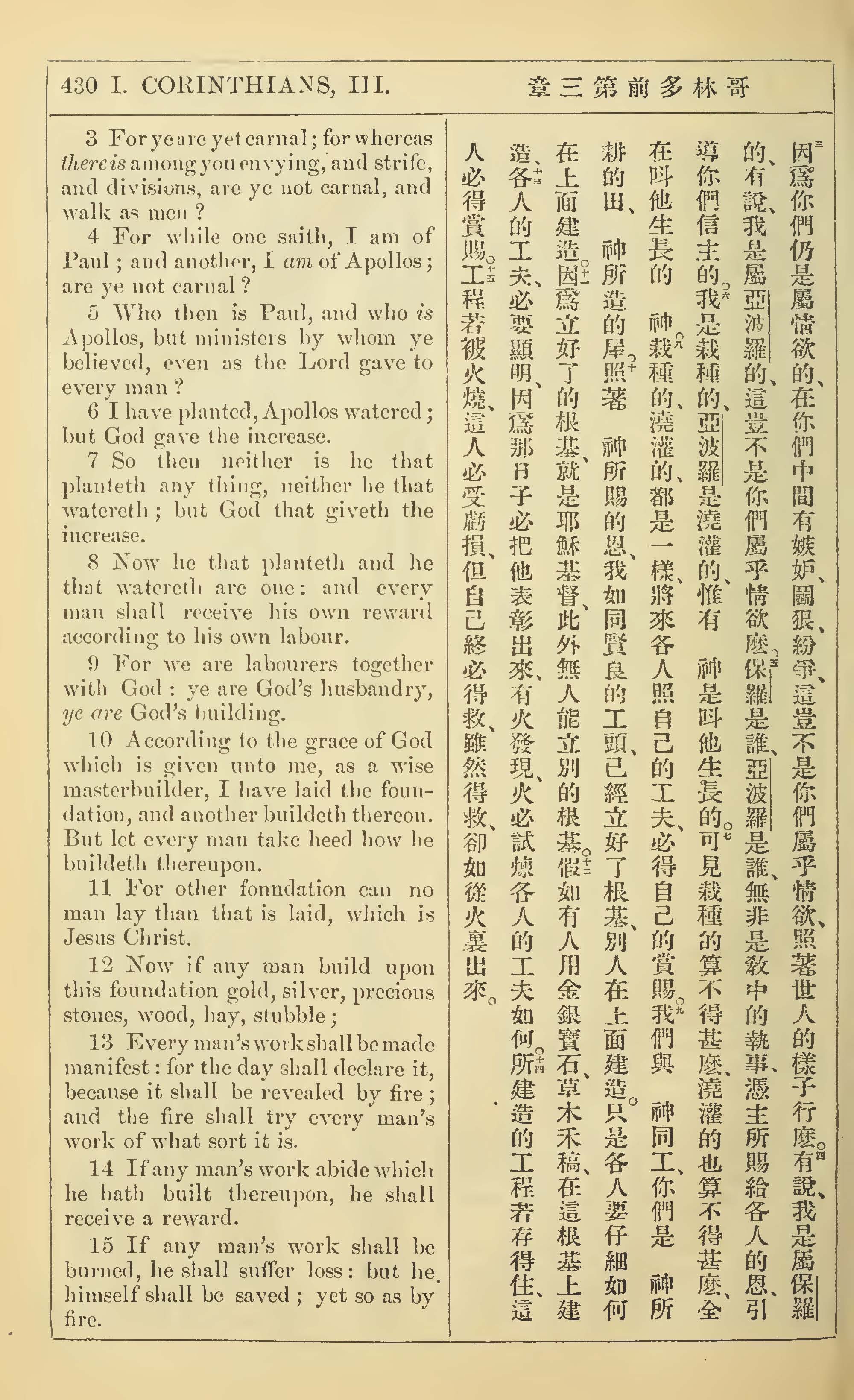 1902年新約全書(中英對照) 哥林多前書 3 章 3 節到 3 章 15 節