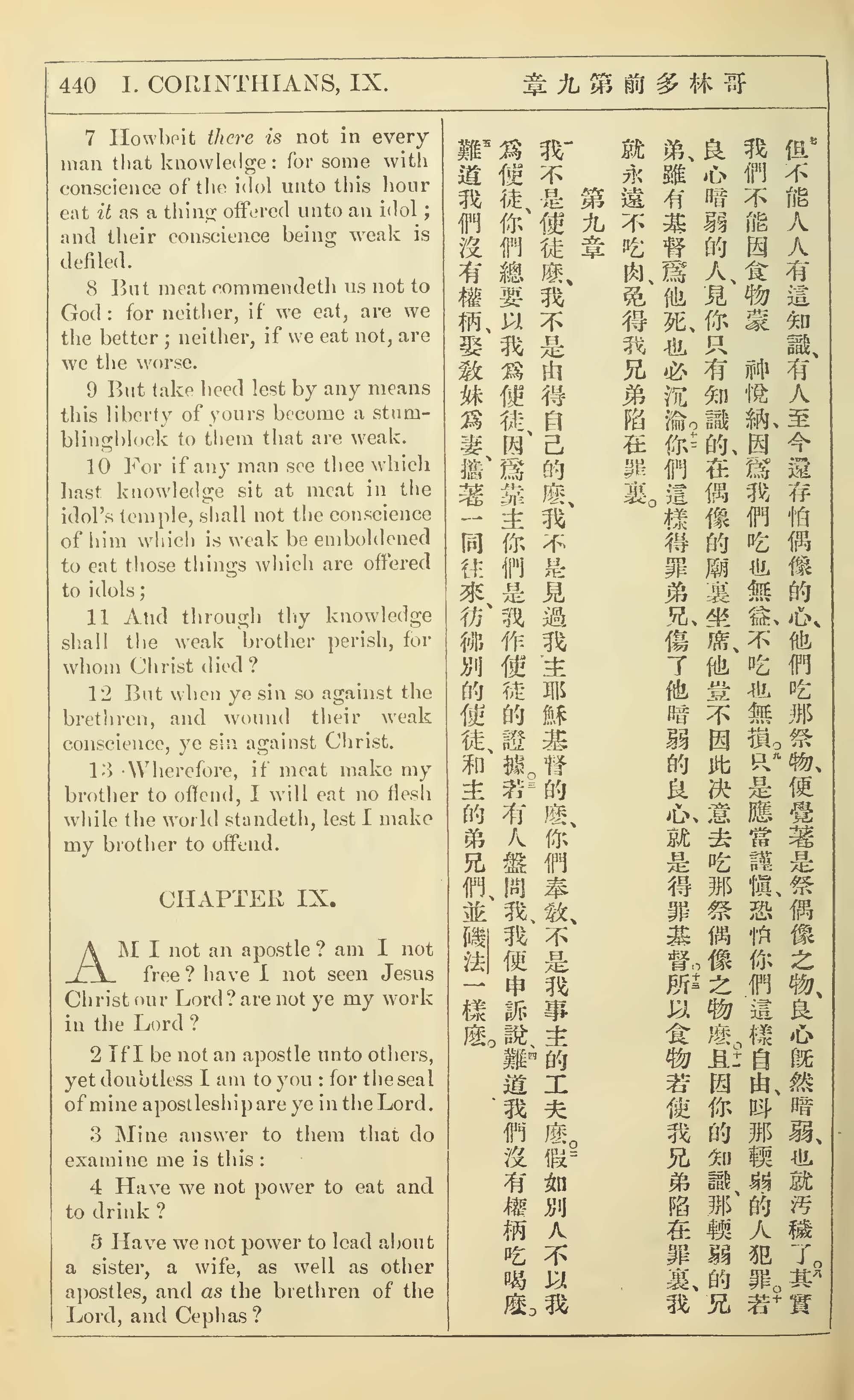 1902年新約全書(中英對照) 哥林多前書 8 章 7 節到 9 章 5 節