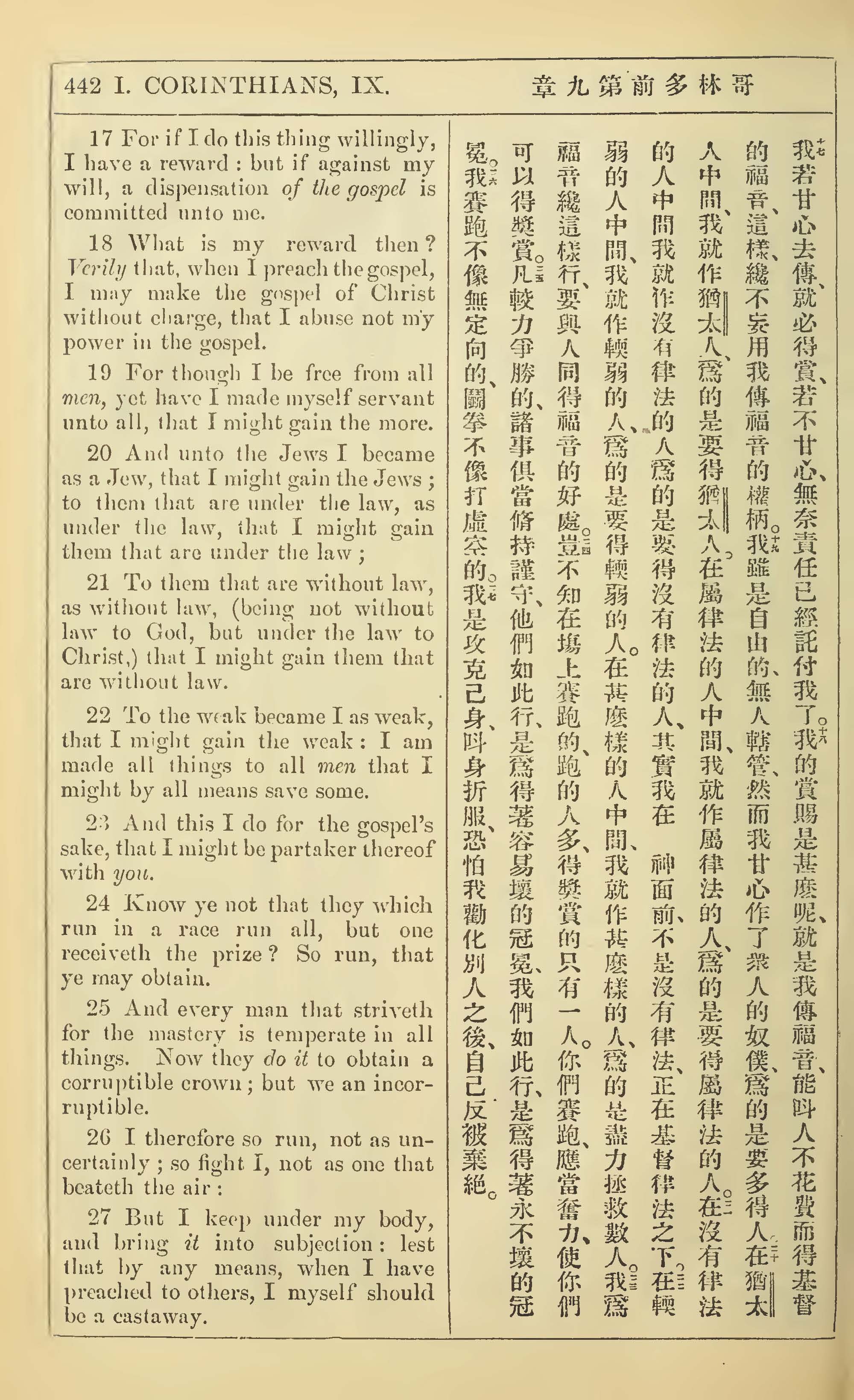 1902年新約全書(中英對照) 哥林多前書 9 章 17 節到 9 章 27 節