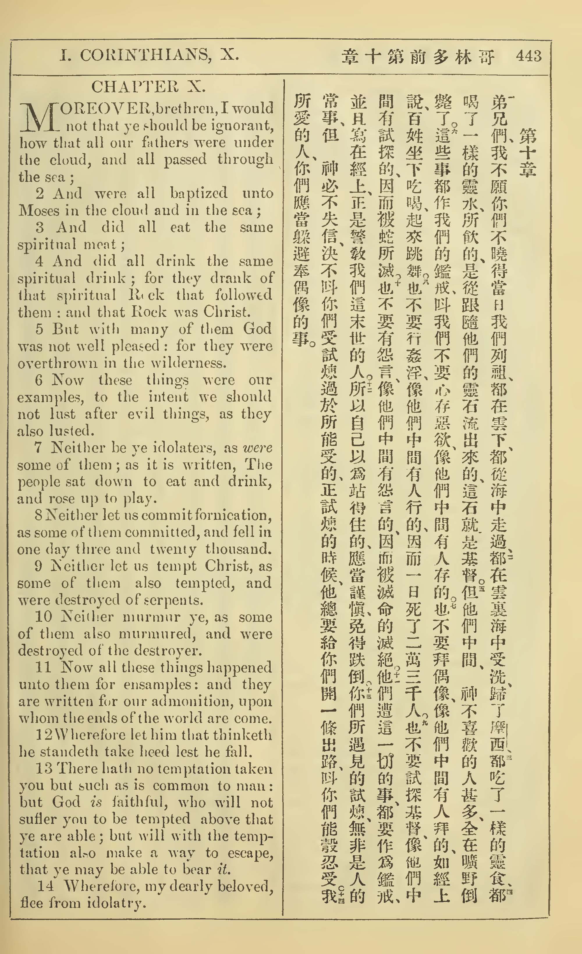 1902年新約全書(中英對照) 哥林多前書 10 章 1 節到 10 章 14 節