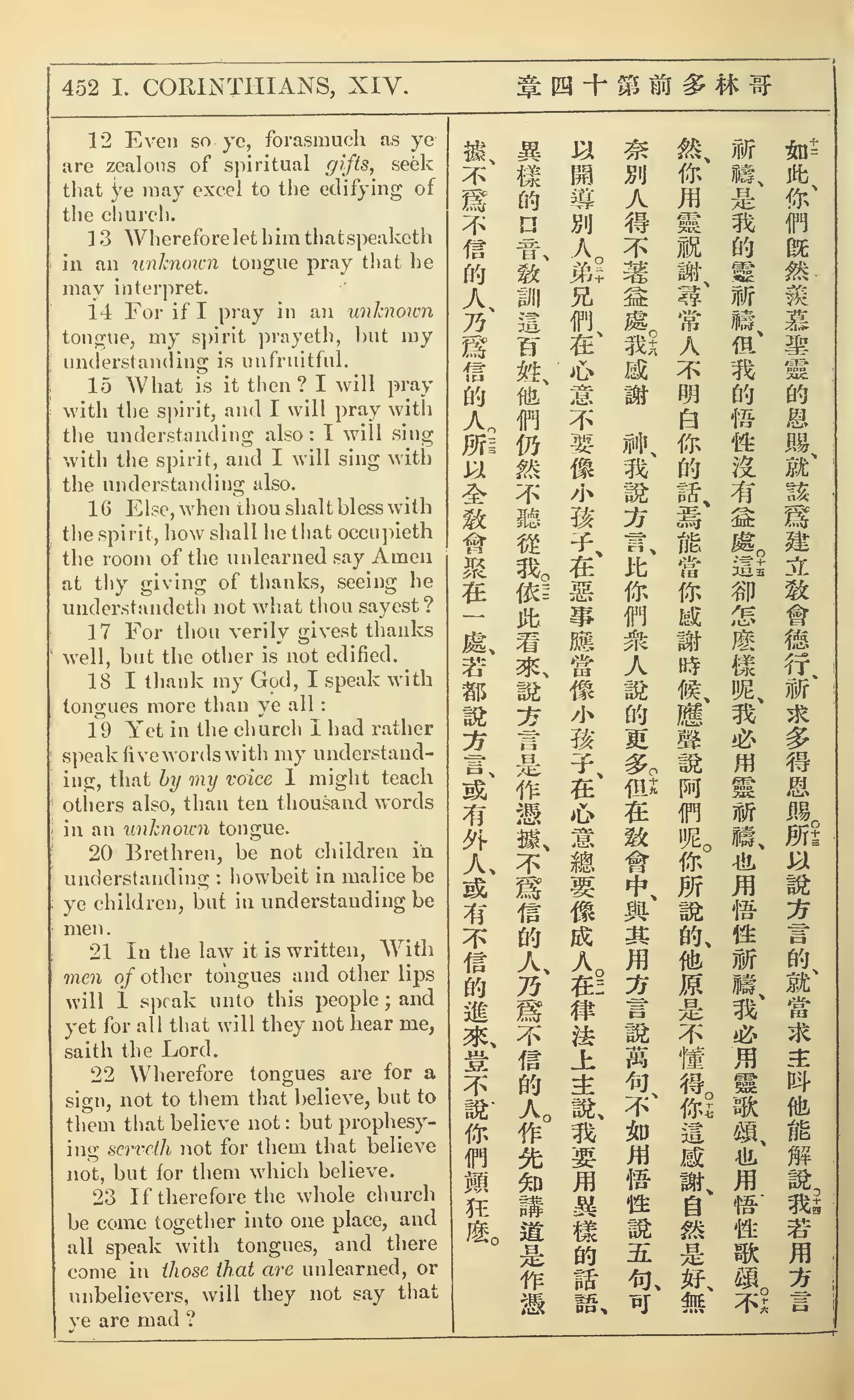 1902年新約全書(中英對照) 哥林多前書 14 章 12 節到 14 章 22 節