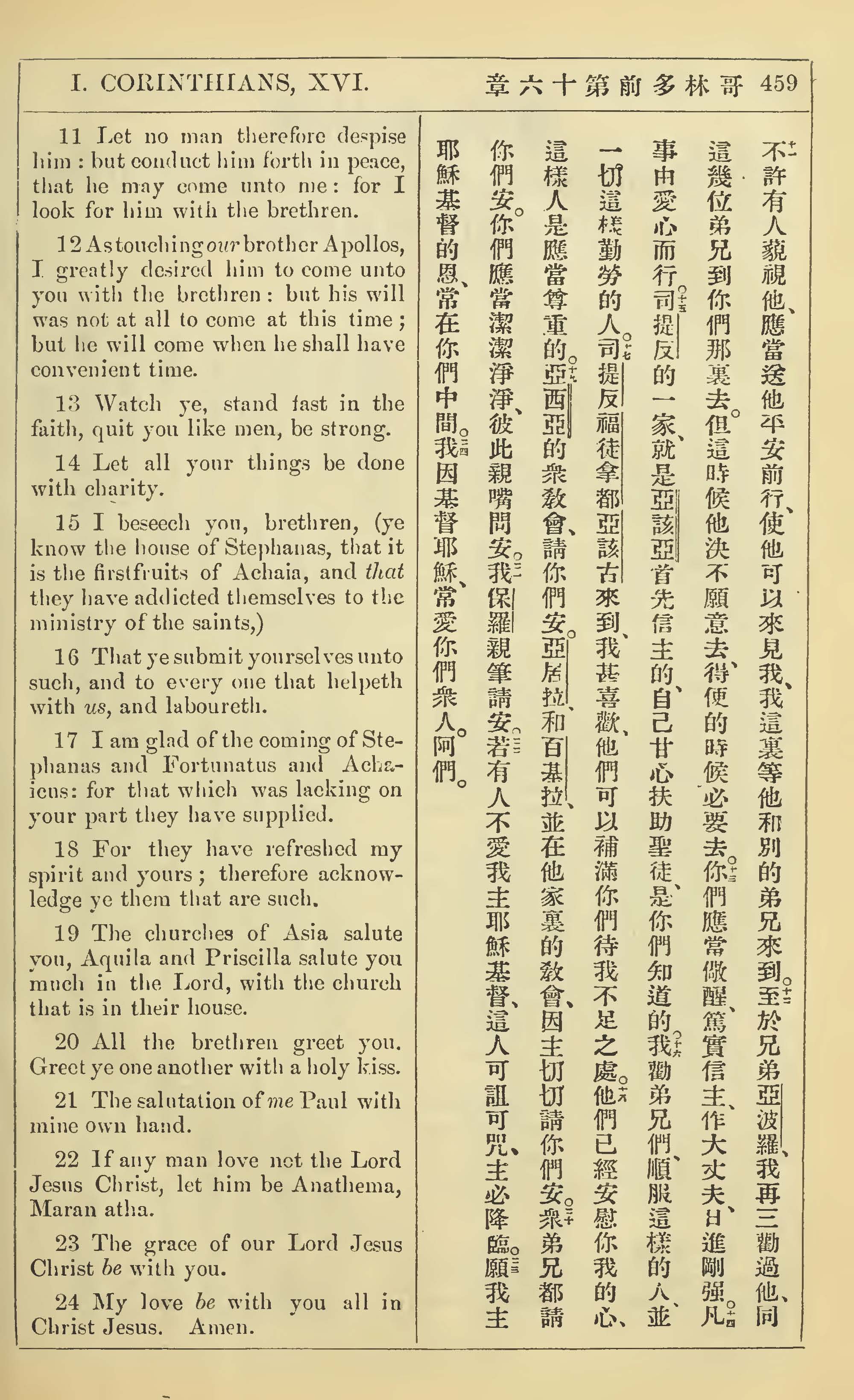 1902年新約全書(中英對照) 哥林多前書 16 章 11 節到 16 章 24 節