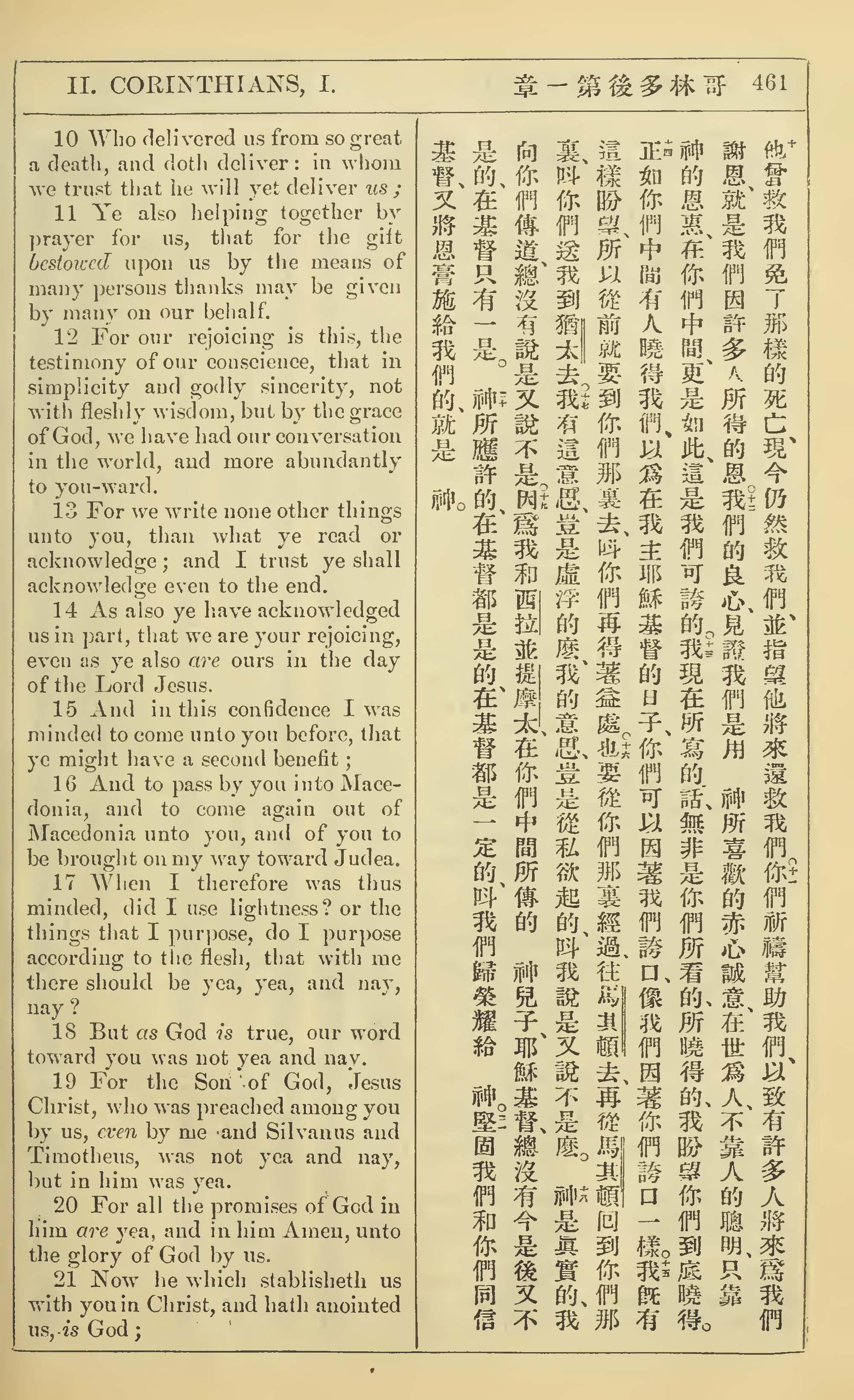 1902年新約全書(中英對照) 哥林多後書 1 章 10 節到 1 章 21 節