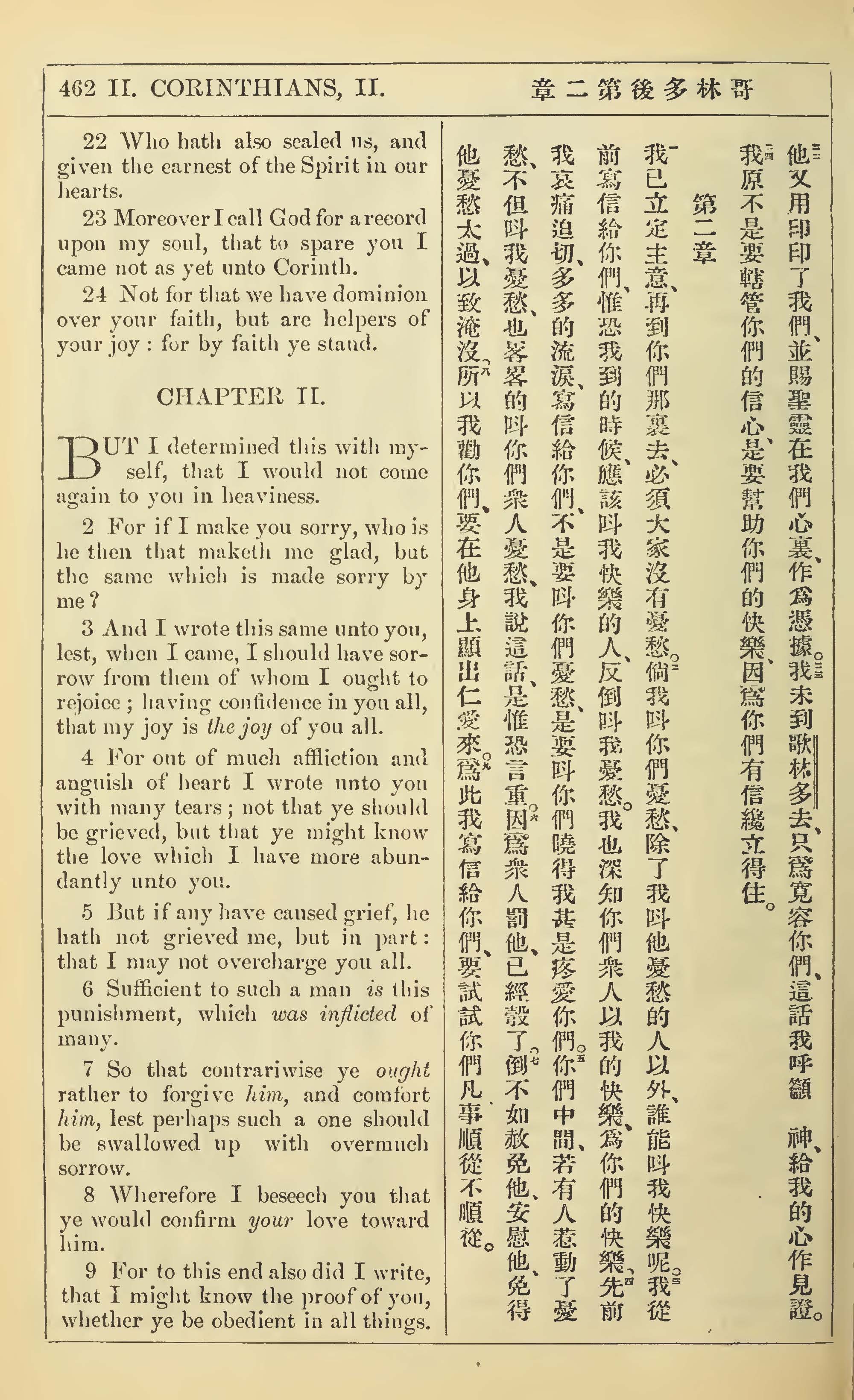 1902年新約全書(中英對照) 哥林多後書 1 章 22 節到 2 章 9 節