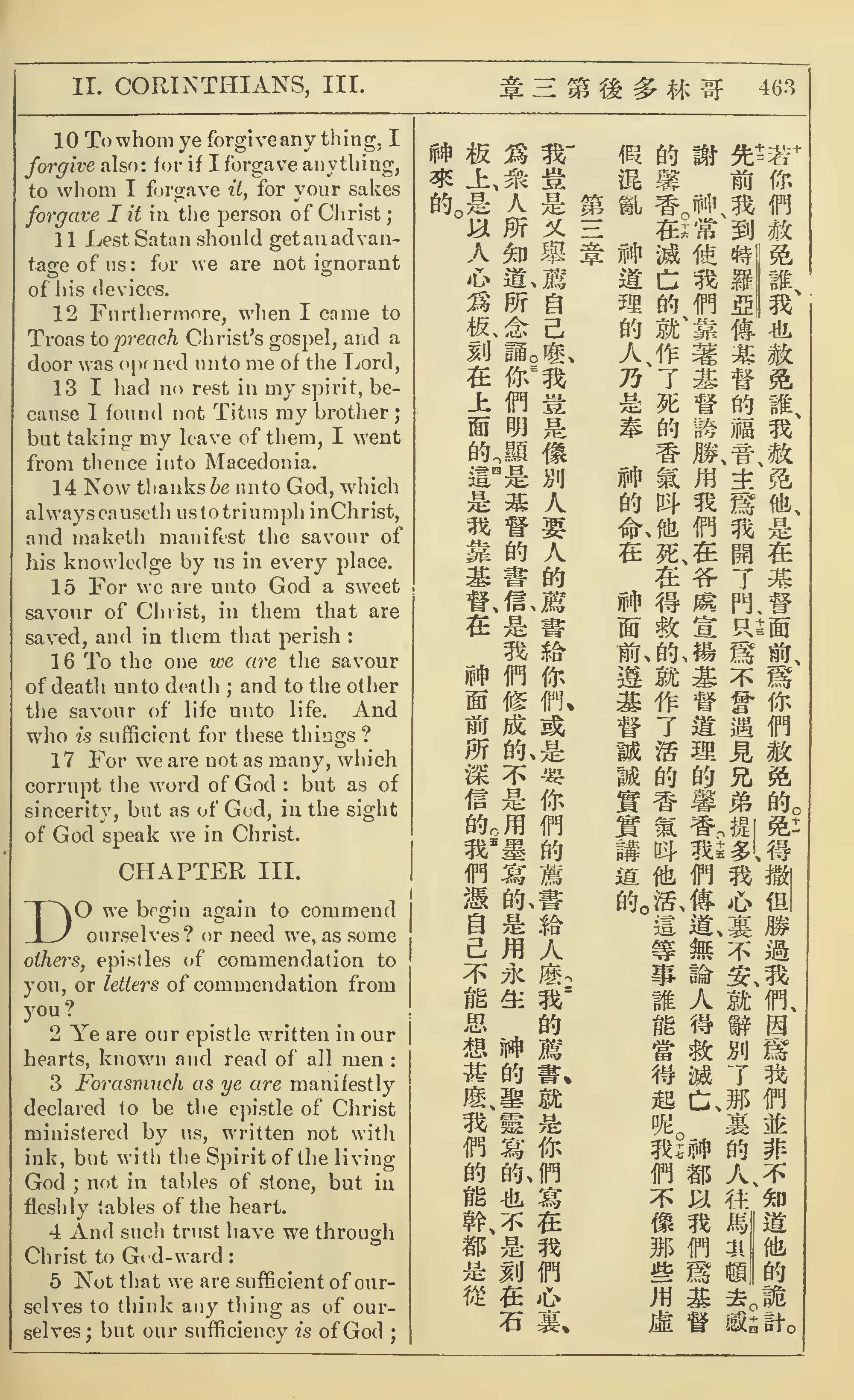 1902年新約全書(中英對照) 哥林多後書 2 章 10 節到 3 章 5 節