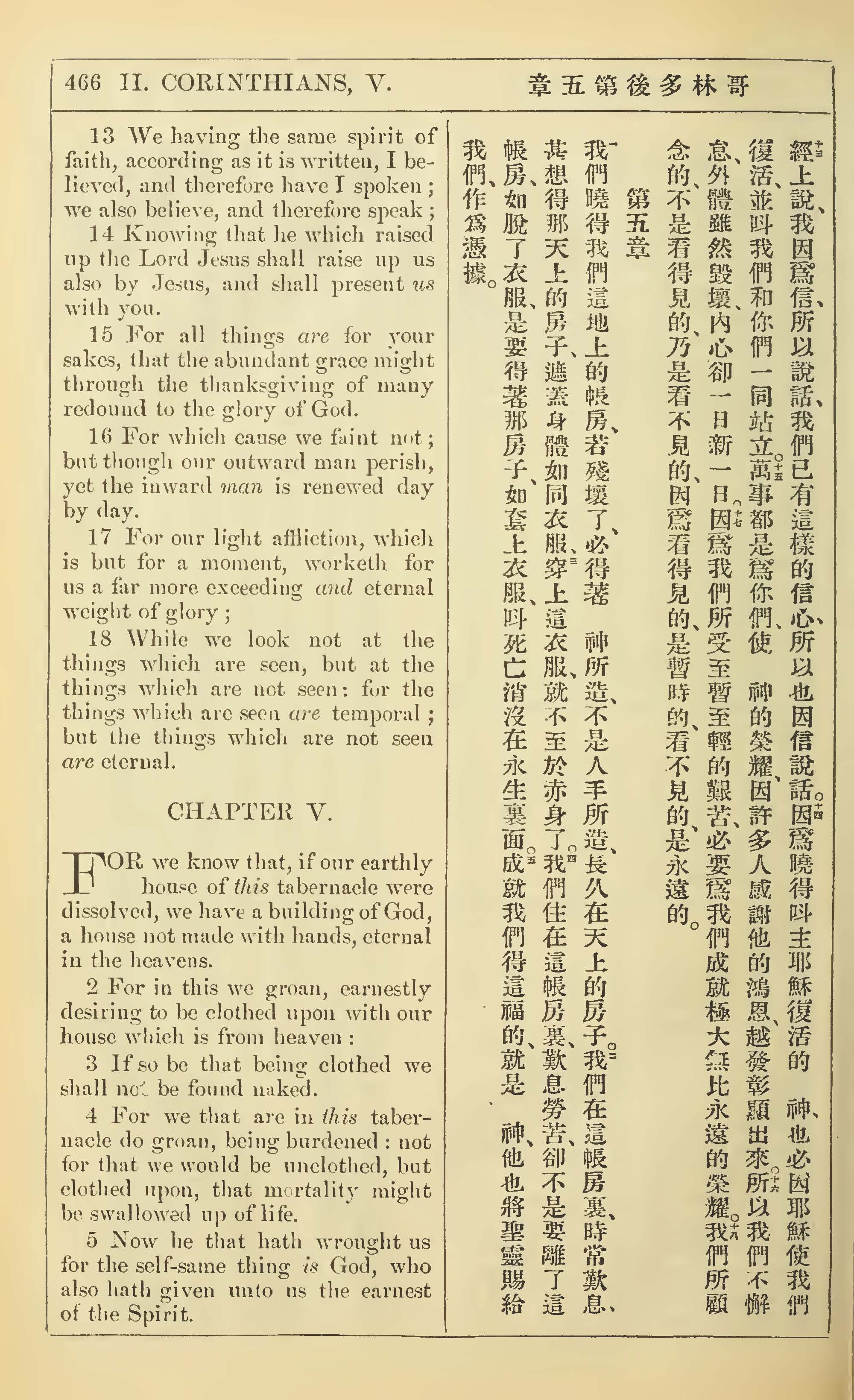 1902年新約全書(中英對照) 哥林多後書 4 章 13 節到 5 章 5 節