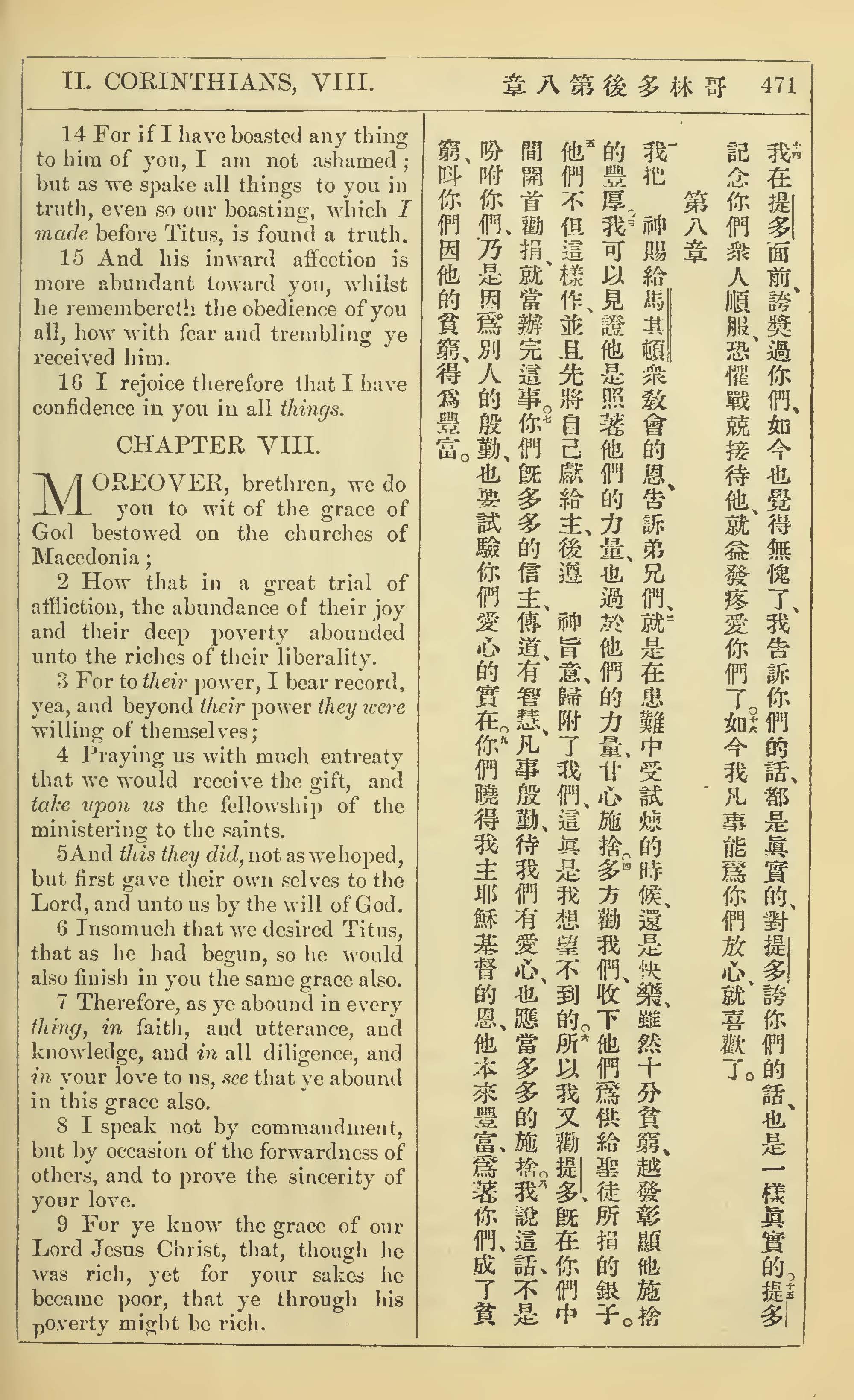 1902年新約全書(中英對照) 哥林多後書 7 章 14 節到 8 章 9 節