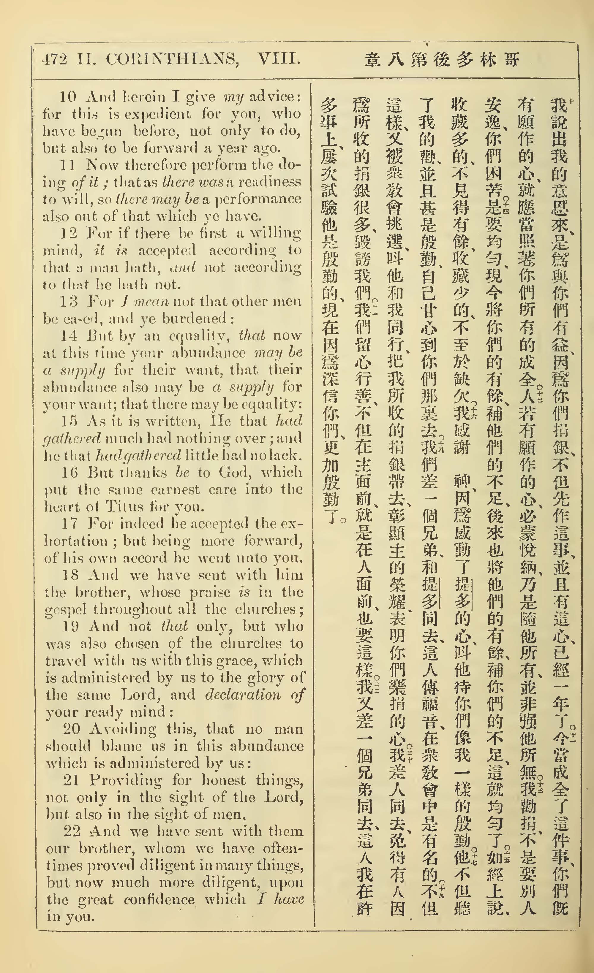 1902年新約全書(中英對照) 哥林多後書 8 章 10 節到 8 章 22 節