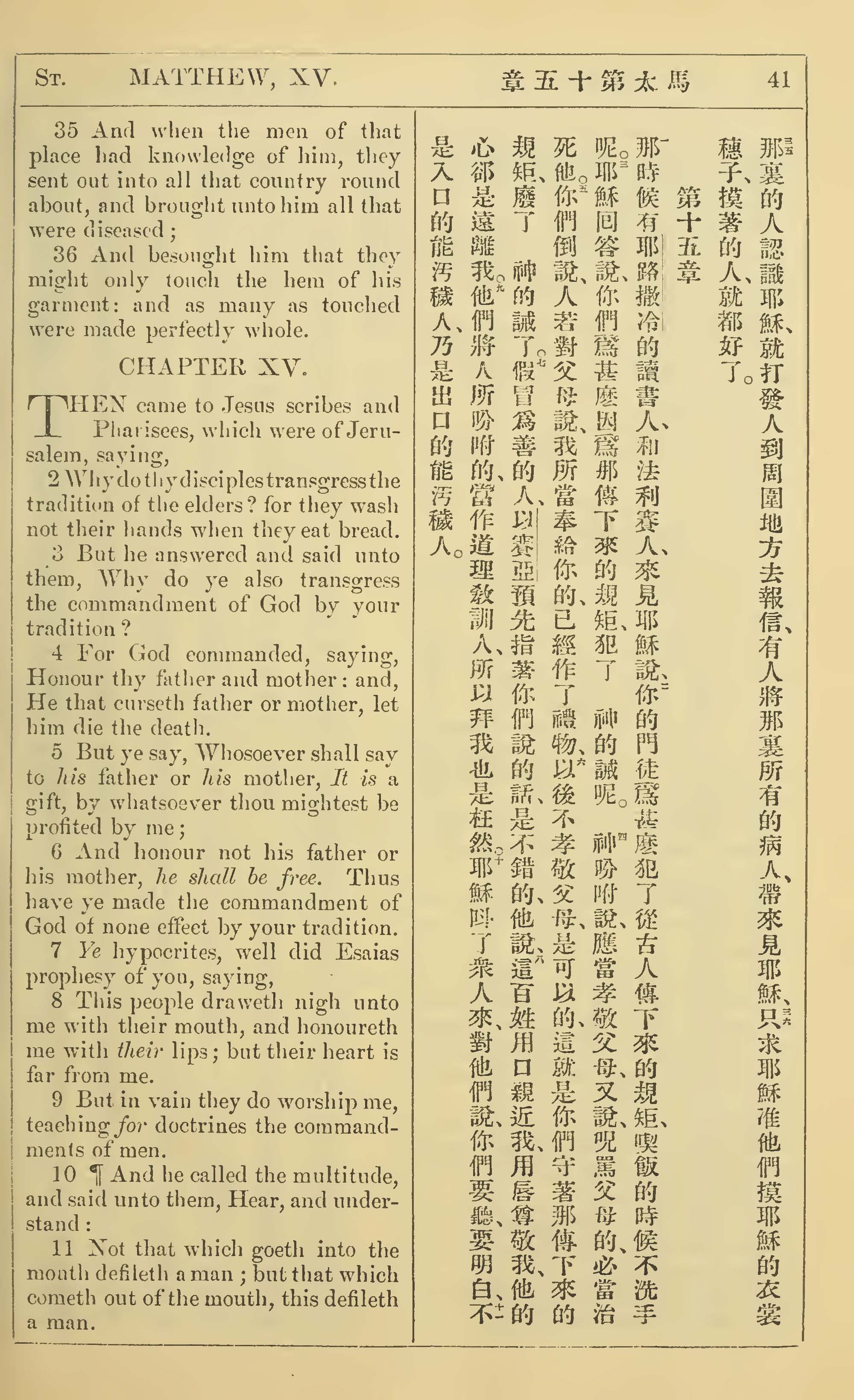 1902年新約全書(中英對照) 馬太福音 14 章 35 節到 15 章 11 節