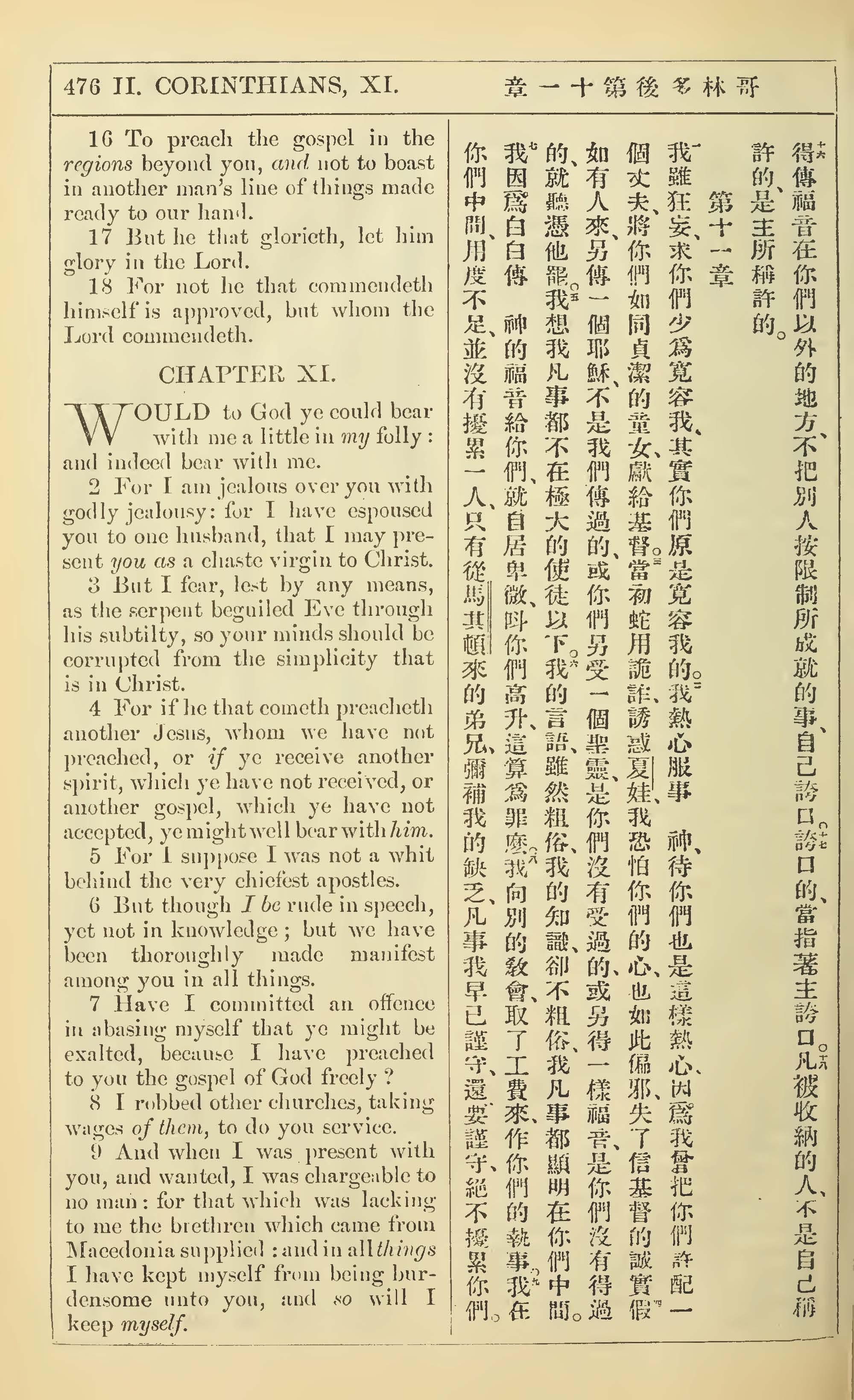 1902年新約全書(中英對照) 哥林多後書 10 章 16 節到 11 章 9 節