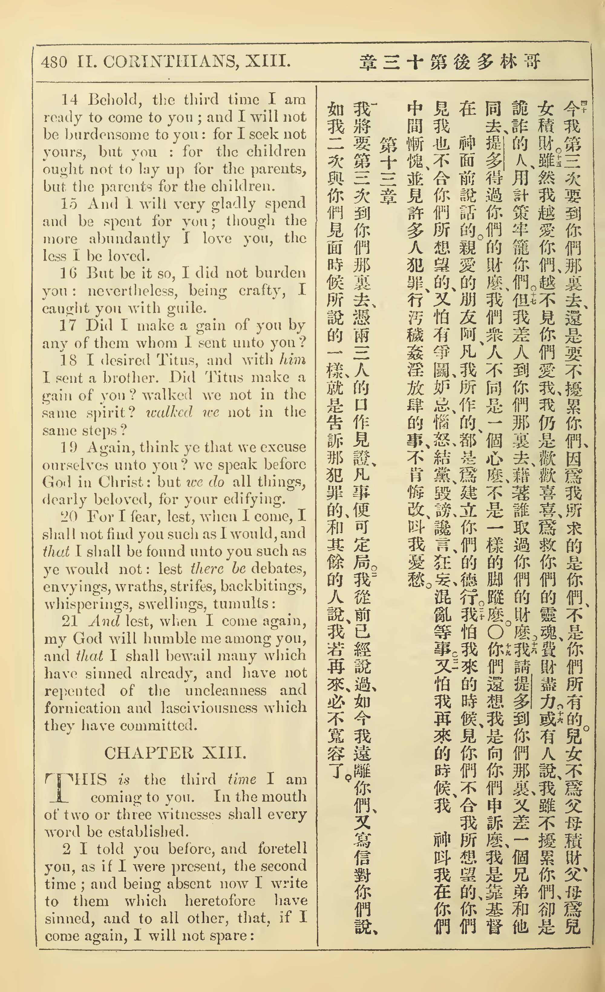 1902年新約全書(中英對照) 哥林多後書 12 章 14 節到 13 章 2 節