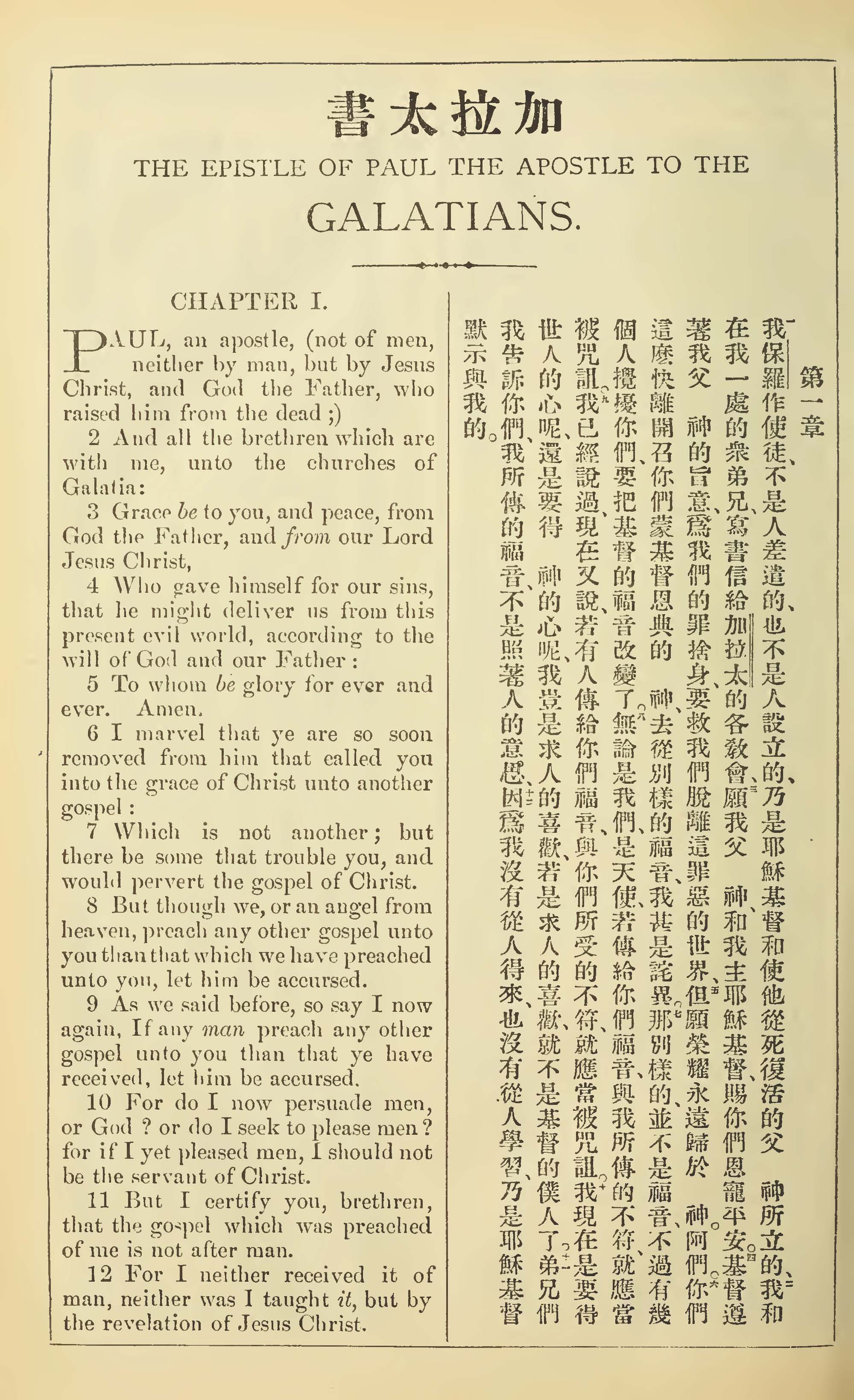 1902年新約全書(中英對照) 加拉太書 1 章 1 節到 1 章 12 節