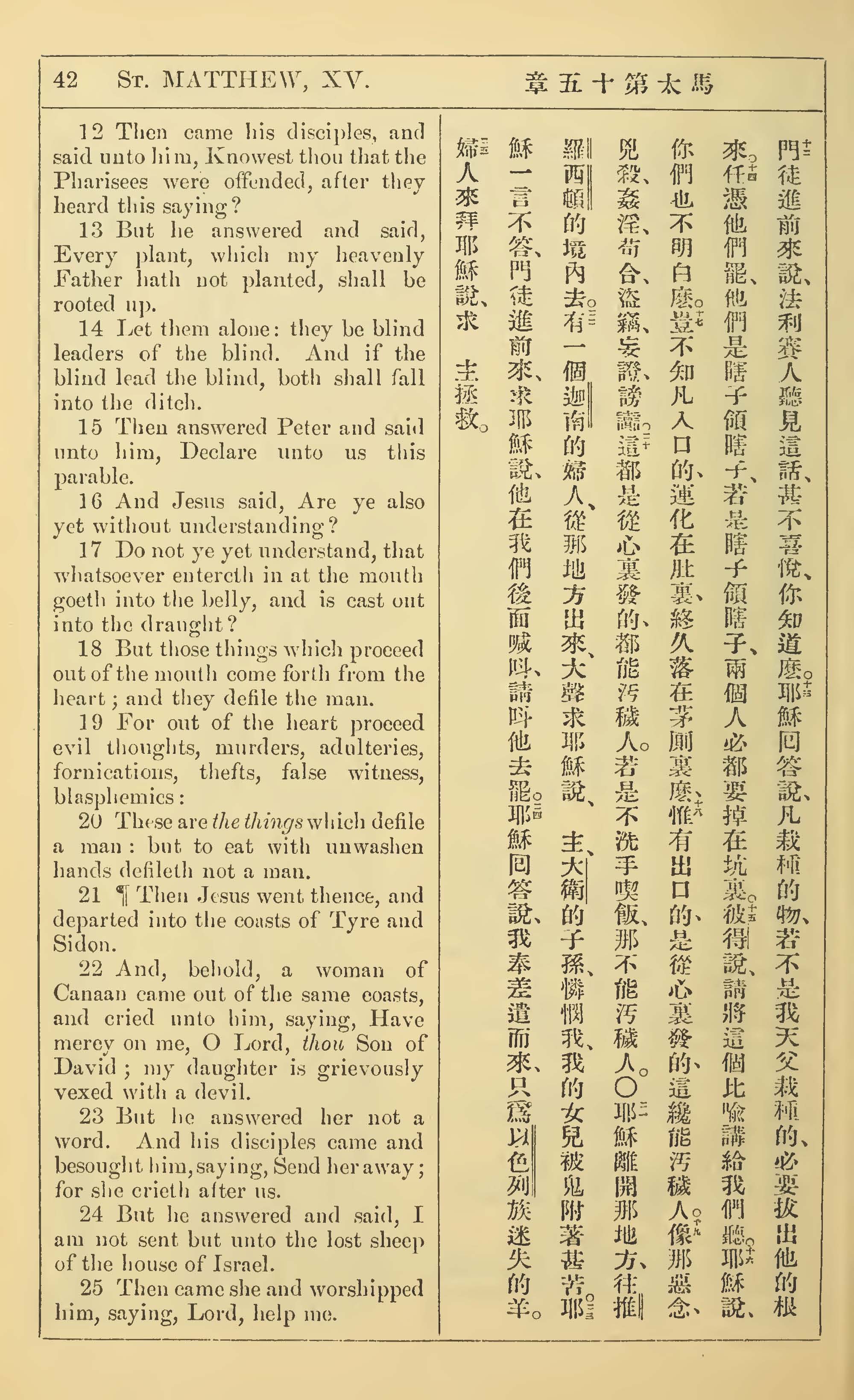 1902年新約全書(中英對照) 馬太福音 15 章 12 節到 15 章 25 節