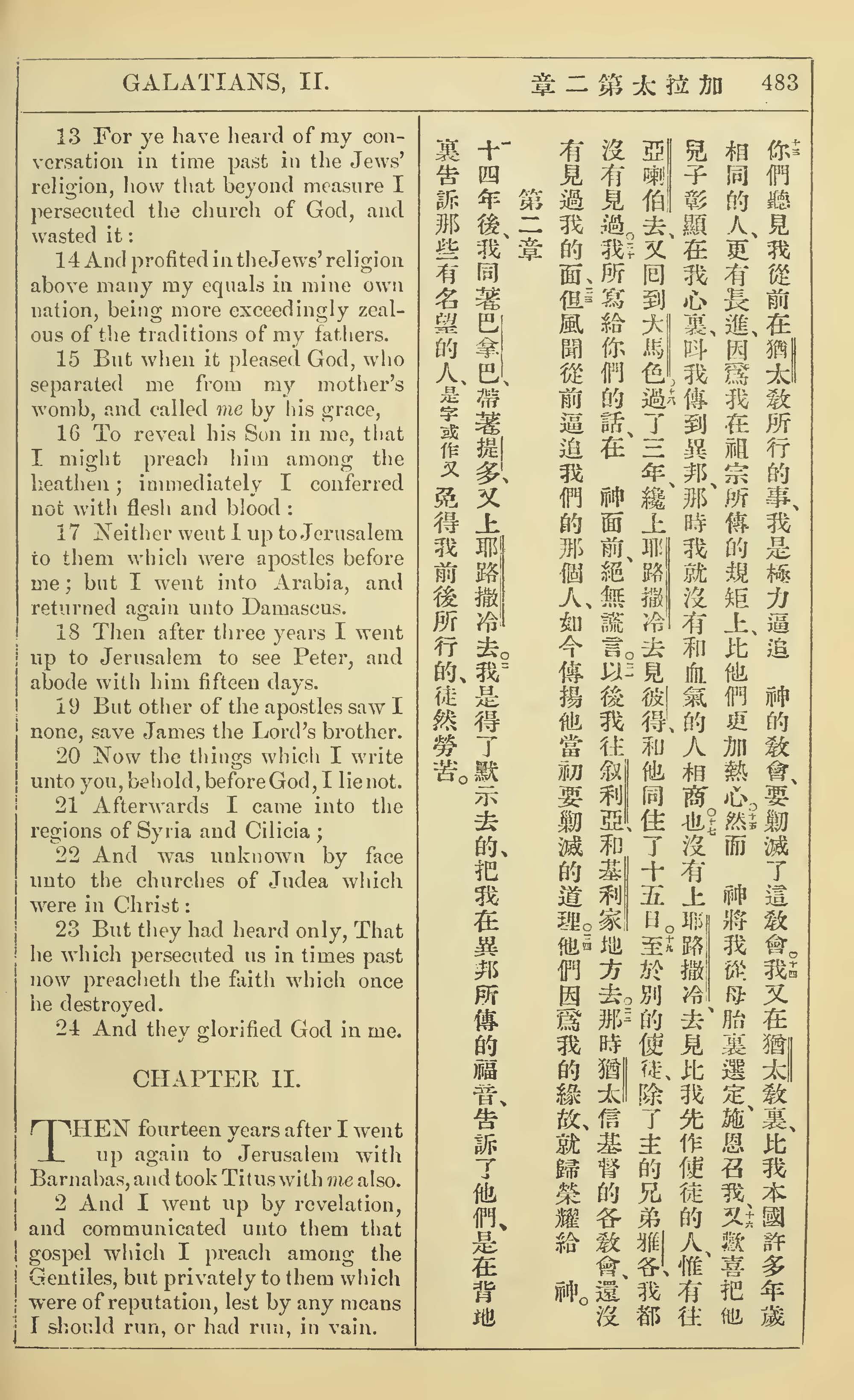 1902年新約全書(中英對照) 加拉太書 1 章 13 節到 2 章 2 節